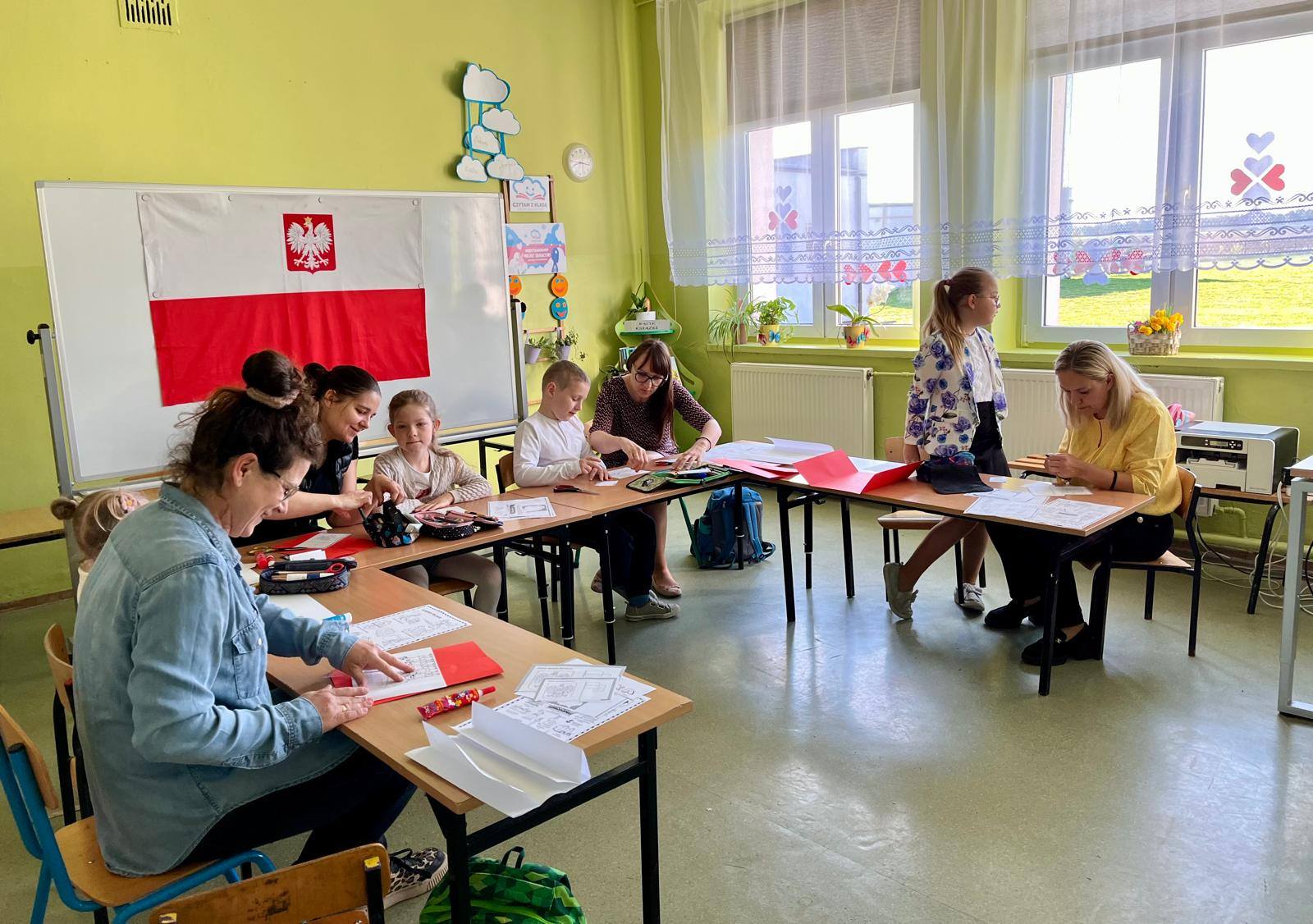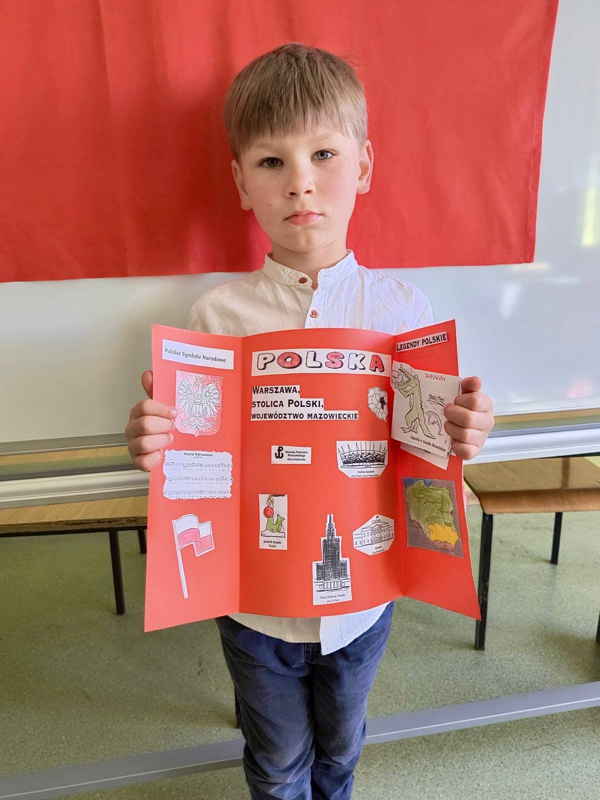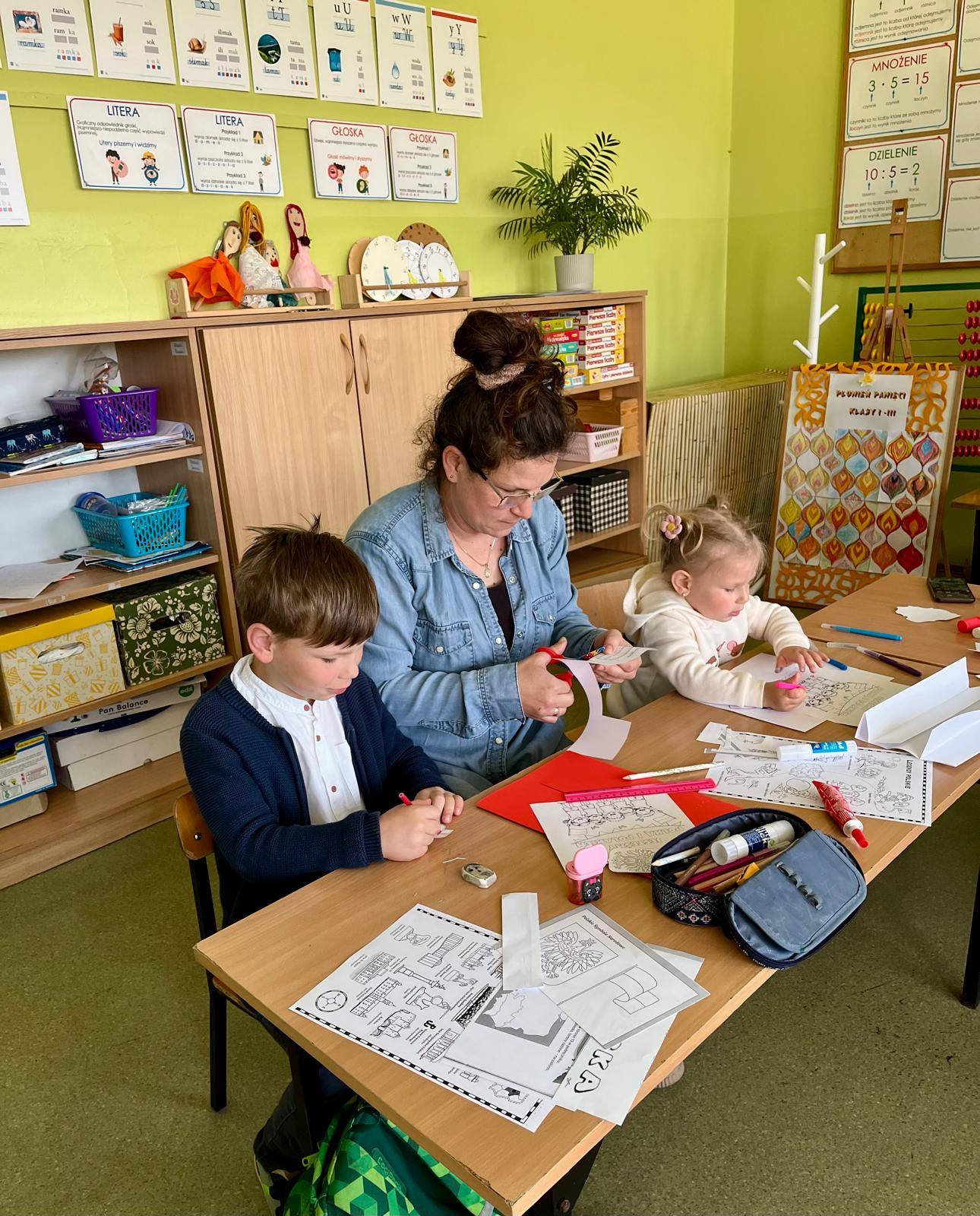 Wspólne zajęcia uczniów klasy pierwszej i ich rodziców, które odbyły się 30 kwietna, były podsumowaniem zdobytych przez dzieci wiadomości o Polsce . W czasie zajęć zespoły rodzinne wykonały lapbooki o tematyce związanej z miejscami, które dzieci kojarzą z ojczyzną, legendami, symbolami narodowymi oraz mapą Polski. Celem spotkania było kształtowanie postawy patriotycznej, budzenie więzi z krajem ojczystym oraz integracja środowiska rodzinnego ze szkolnym. Zajęcia przebiegły w miłej i sympatycznej atmosferze. Wspólnie spędzony czas, rozmowy o ojczyźnie, wzmocniły więzi między dziećmi, rodzicami i szkołą.