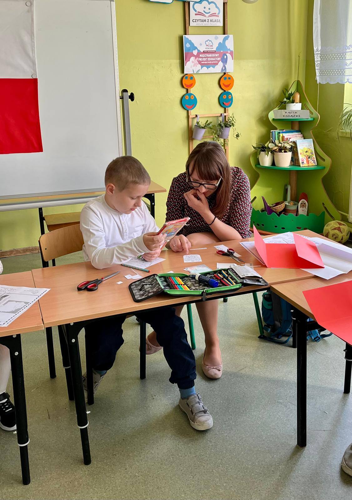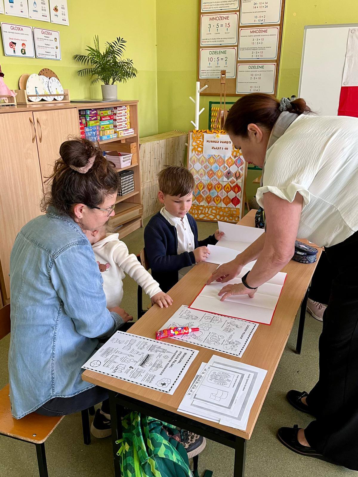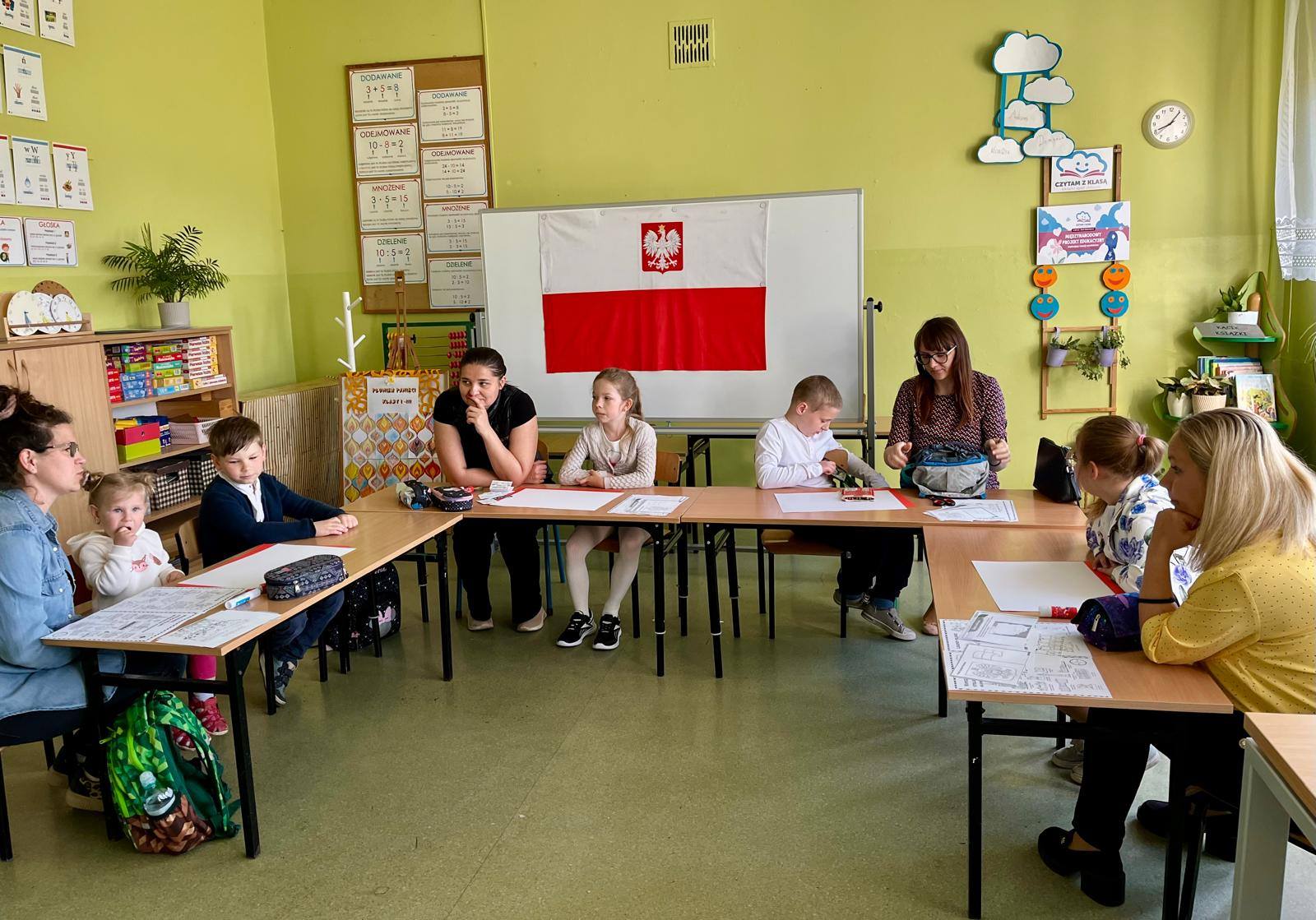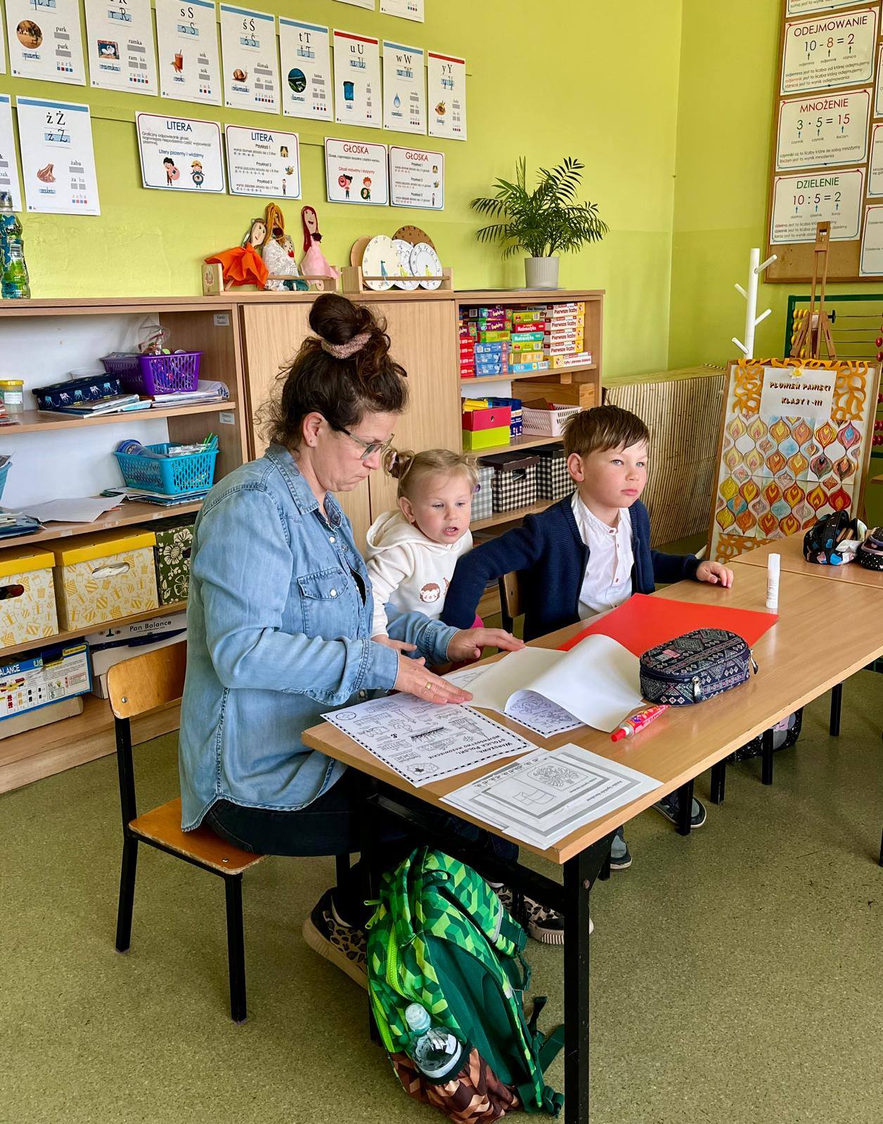 Wspólne zajęcia uczniów klasy pierwszej i ich rodziców, które odbyły się 30 kwietna, były podsumowaniem zdobytych przez dzieci wiadomości o Polsce . W czasie zajęć zespoły rodzinne wykonały lapbooki o tematyce związanej z miejscami, które dzieci kojarzą z ojczyzną, legendami, symbolami narodowymi oraz mapą Polski. Celem spotkania było kształtowanie postawy patriotycznej, budzenie więzi z krajem ojczystym oraz integracja środowiska rodzinnego ze szkolnym. Zajęcia przebiegły w miłej i sympatycznej atmosferze. Wspólnie spędzony czas, rozmowy o ojczyźnie, wzmocniły więzi między dziećmi, rodzicami i szkołą.