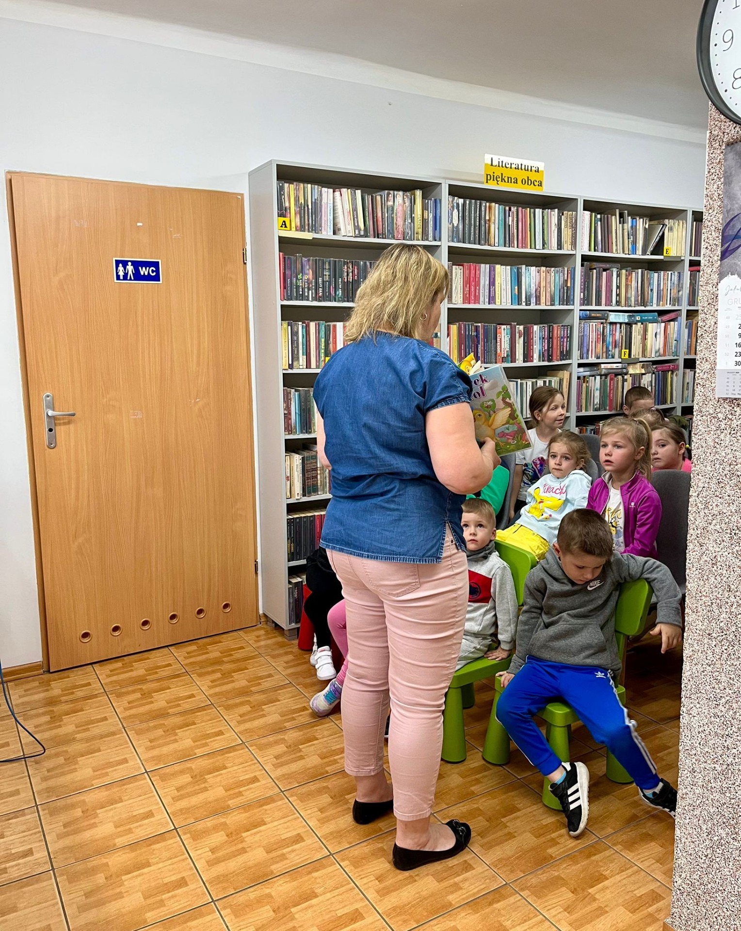 Dzieci mogły posłuchać bicia własnego serca, zapoznać się z wyposażeniem znajdującym się w ośrodku zdrowia. Dociekliwość uczniów została nagrodzona naklejką „Dzielny pacjent”. Pełni wrażeń wyruszyliśmy do Gminnej Biblioteki, gdzie dzieci miały okazję poznać kulisy pracy bibliotekarza, odkryć ciekawe książki. Tu również zostaliśmy obdarowani zakładkami do książek.
