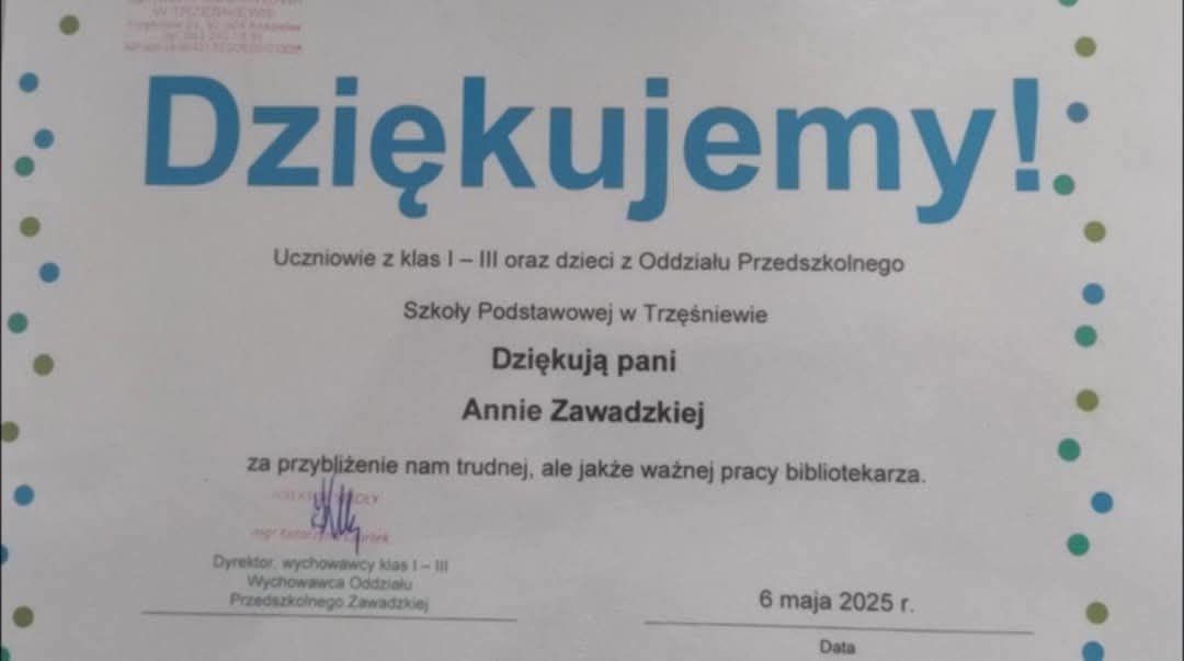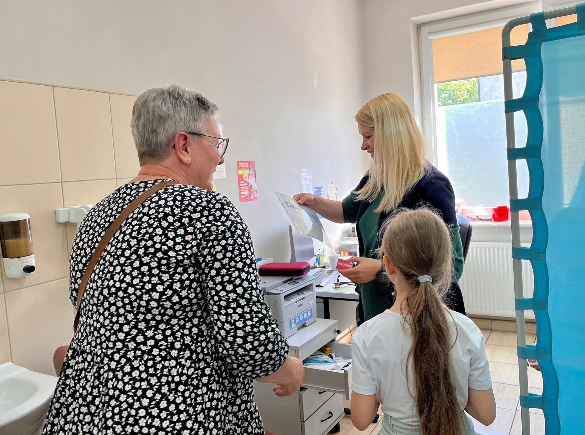 Dziękujemy pani doktor - Annie Pawełkiewicz, pielęgniarce - pani Elżbiecie Szmajdzińskiej oraz pani dyrektor - Annie Zawadzkiej za miłe i ciepłe przyjęcie.