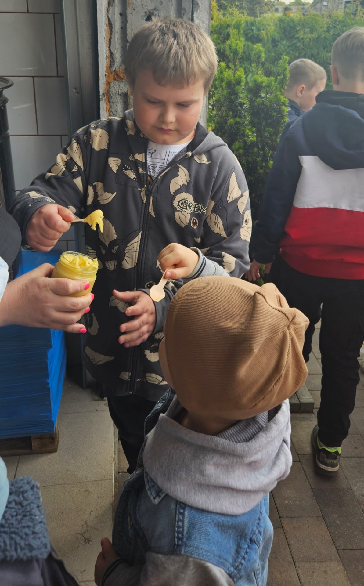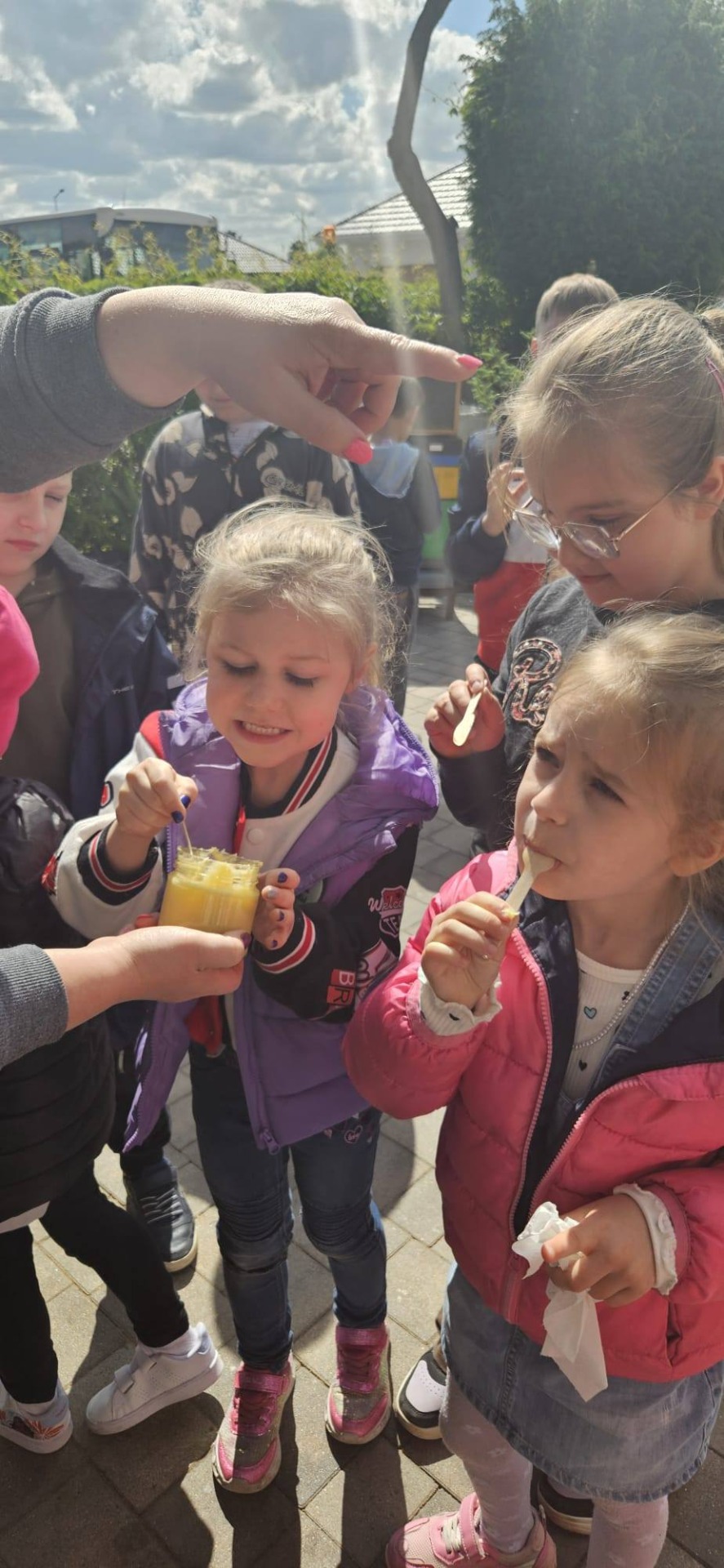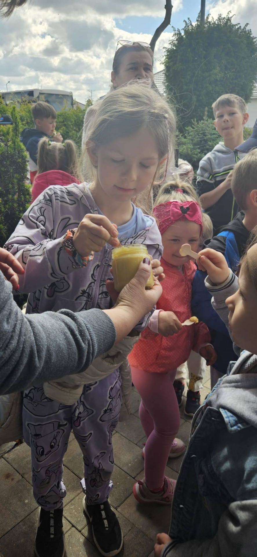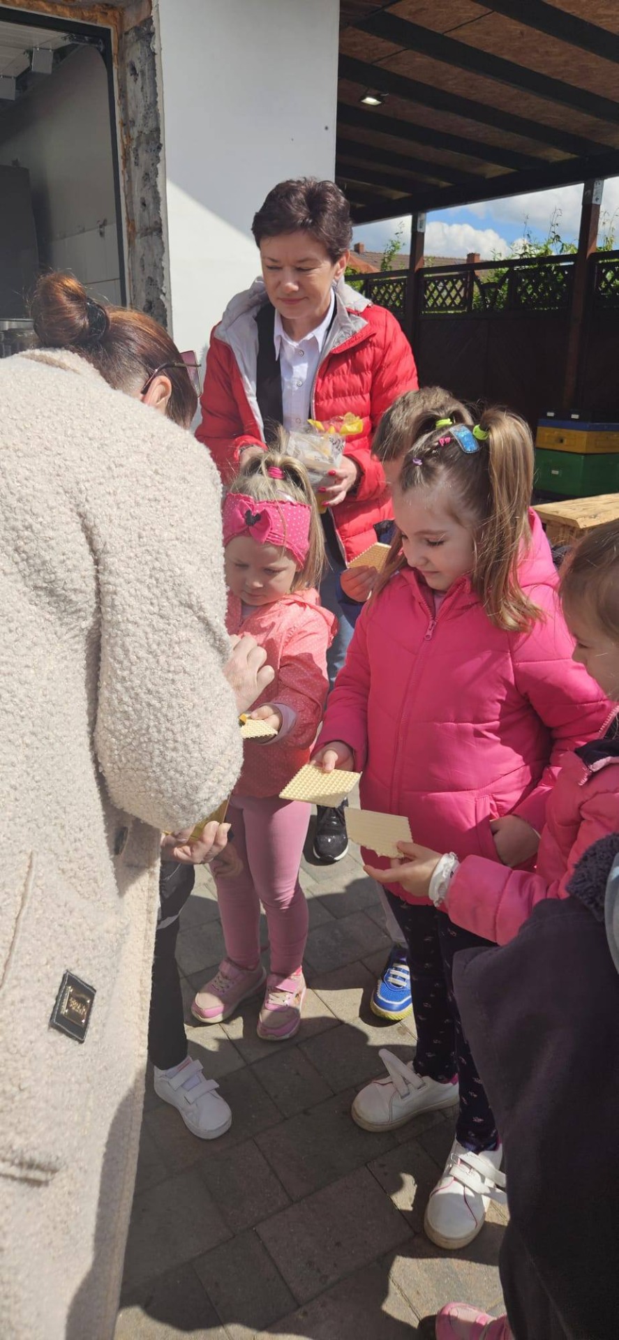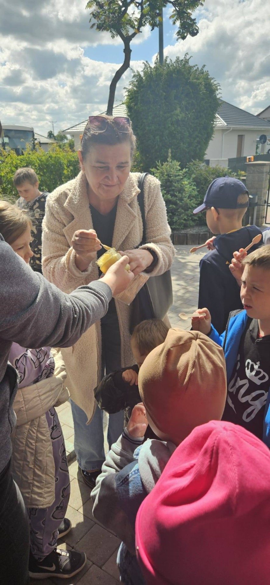Dnia 12 maja 2025r. dzieci z oddziału przedszkolnego i uczniowie klas I-III wraz z wychowawcami wybrali się z wizytą do pasieki „Miodowa Kraina” prowadzonej przez państwa Sylwię i Karola Stefańskich. Celem wizyty było poznanie życia pszczół, trudnej pracy pszczelarza, procesów zachodzących w ulu, docenienie walorów zdrowotnych, odżywczych oraz smakowych miodu i jego pochodnych (propolis, pyłek, wosk). Dzieci obejrzały różne narzędzia i przedmioty, które pomagają w pracy z pszczołami. Na własne oczy zobaczyły królową pszczół, którą najpierw musiały odnaleźć. Uczniowie mogli też zobaczyć z bliska, jak wygląda wypełniony plaster miodu i samodzielnie zeskrobać wosk. Każdy z nich przymierzył ubranie pszczelarza. Dzieci skosztowały różnych rodzajów miodu. W czasie pobytu w pasiece uśmiech z twarzy nie schodził naszym degustatorom, a ich radość była jeszcze większa, gdy każdy z nich otrzymał słoiczek miodu. Serdecznie dziękujemy państwu Sylwii i Karolowi Stefańskim za miłe i serdeczne przyjęcie, za interesującą i ciekawą lekcję przyrody, która na długo zapadnie w naszej pamięci.