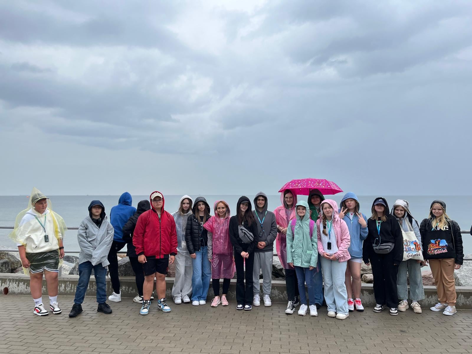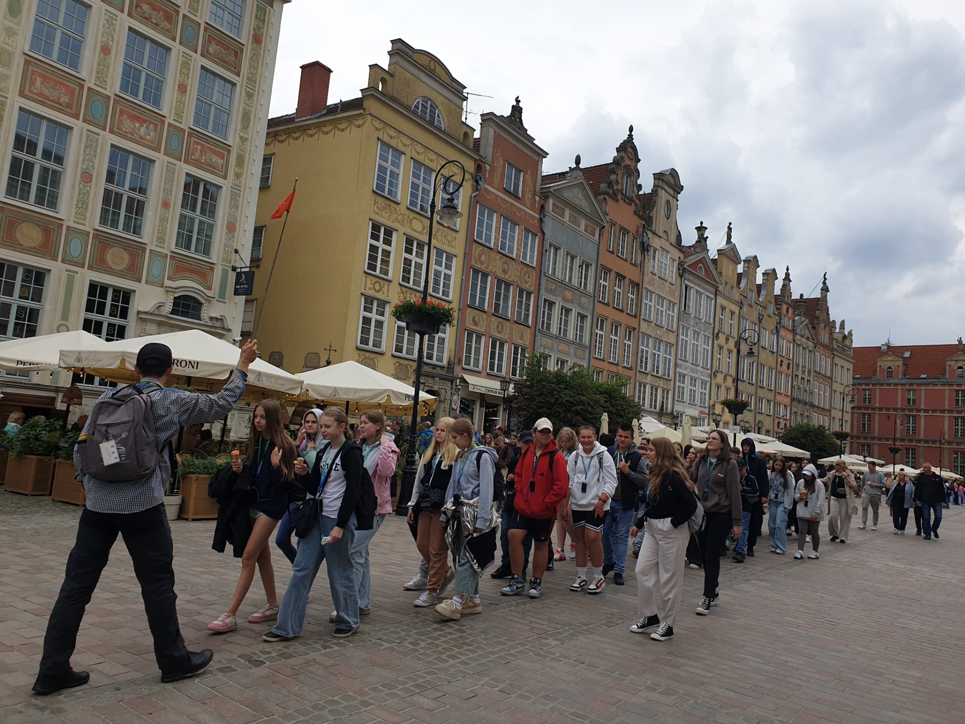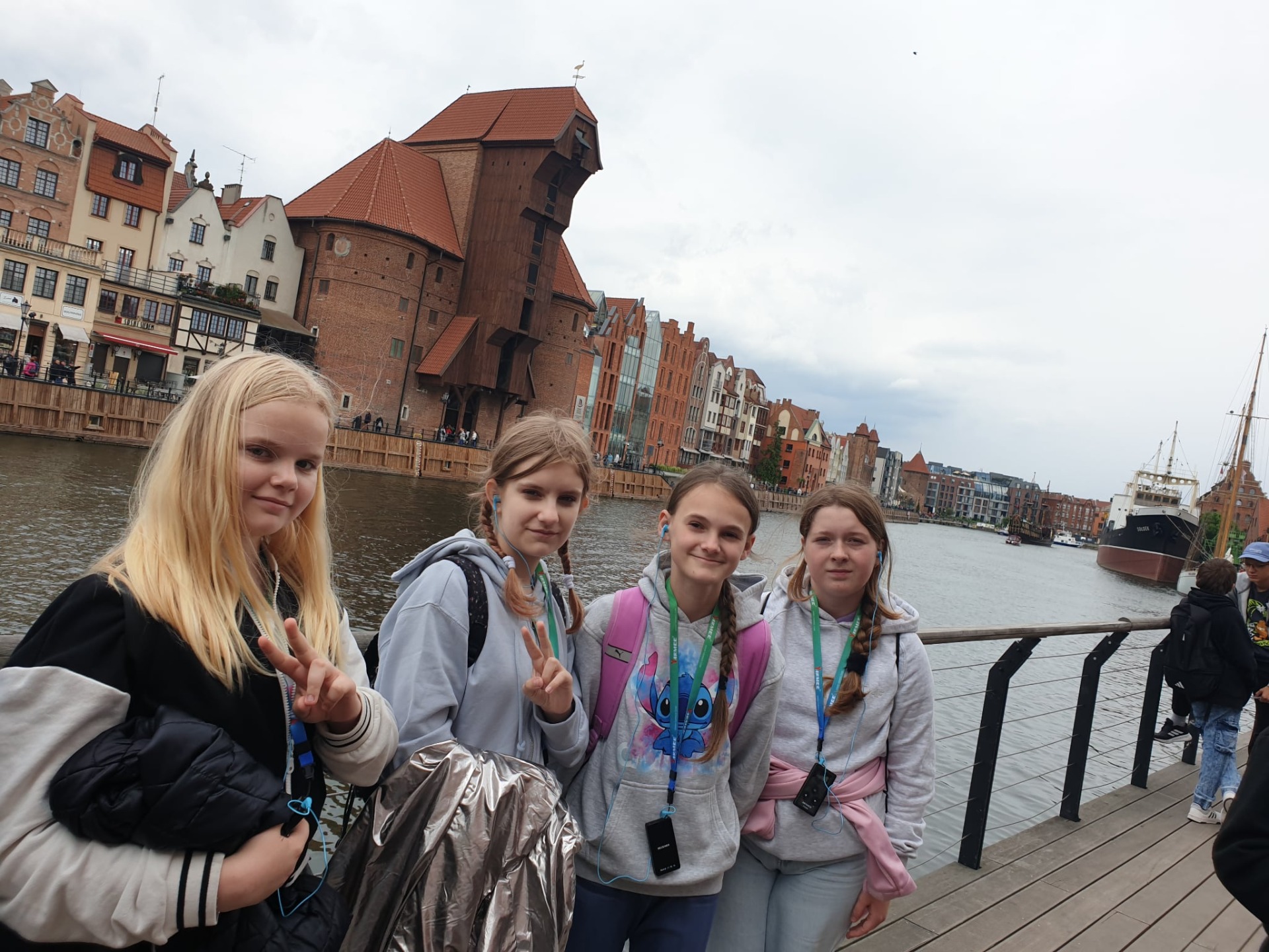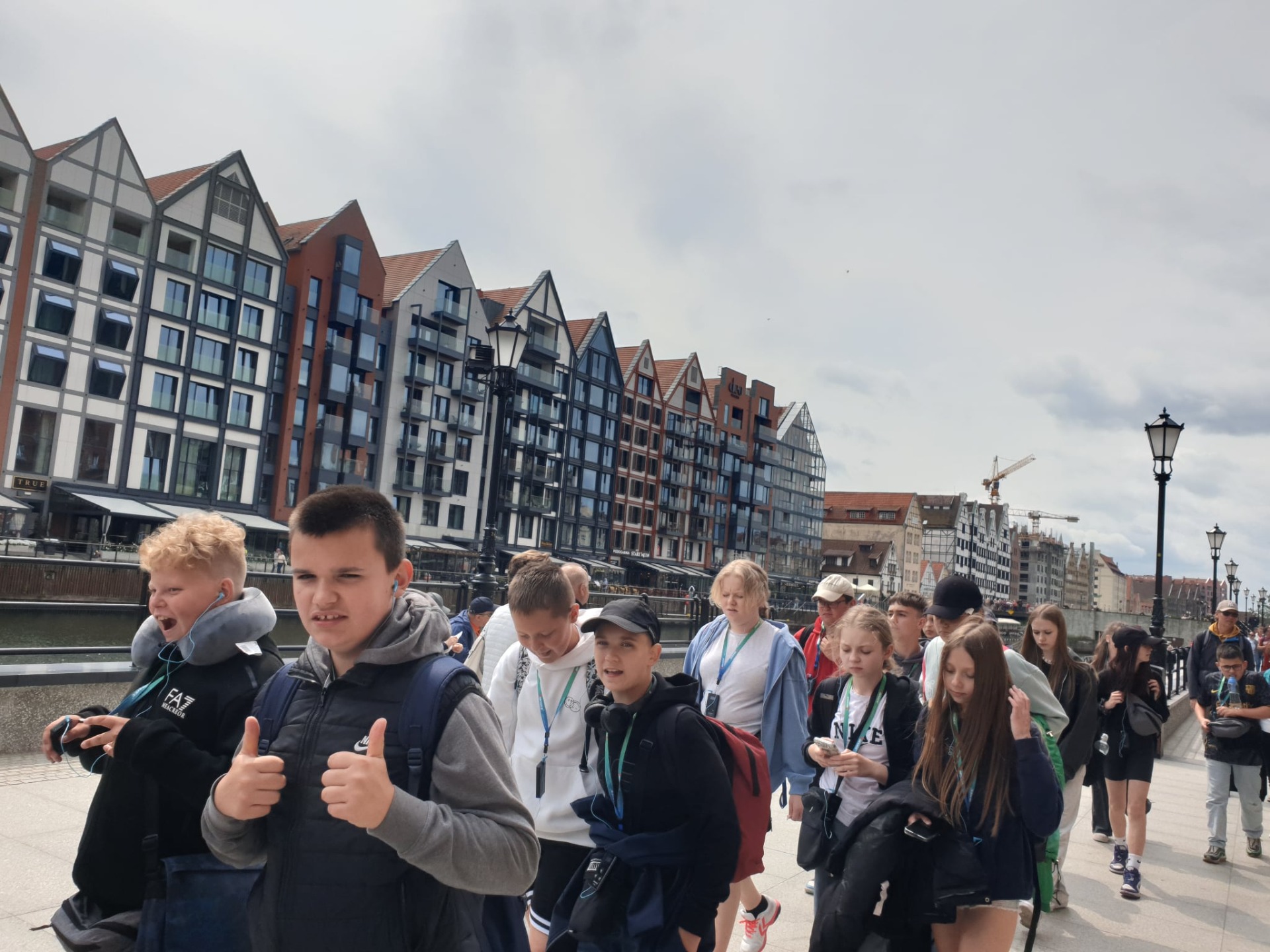 Naszą przygodę rozpoczęliśmy bardzo wcześnie – o 5:30 ruszyliśmy z Trzęśniewa w stronę Gdańska! Po dotarciu na miejsce zwiedzaliśmy Główne Miasto z przewodnikiem. Przeszliśmy przez Bramę Złotą, ulicę Długą i Długi Targ, zobaczyliśmy Ratusz, Dwór Artusa (z zewnątrz), Bramę Zieloną oraz Długie Pobrzeże. Nie zabrakło również spaceru przy Żurawiu i Bazylice Mariackiej. Następnie odwiedziliśmy Westerplatte – spacer po Polu Bitwy, Pomnik Obrońców Wybrzeża i Mogiła Obrońców zrobiły na nas duże wrażenie. Po południu dotarliśmy do Władysławowa i zameldowaliśmy się w hotelu. Po obiadokolacji wybraliśmy się jeszcze na długi spacer Aleją Gwiazd Sportu, by zakończyć dzień pięknym choć deszczowym widokiem na morzem. Mimo intensywnego dnia… nasi uczniowie wciąż mieli dużo energii! Zamiast od razu pójść spać – hotelowe korytarze długo jeszcze tętniły życiem. Cóż, wycieczkowy klimat rządzi się swoimi prawami!
