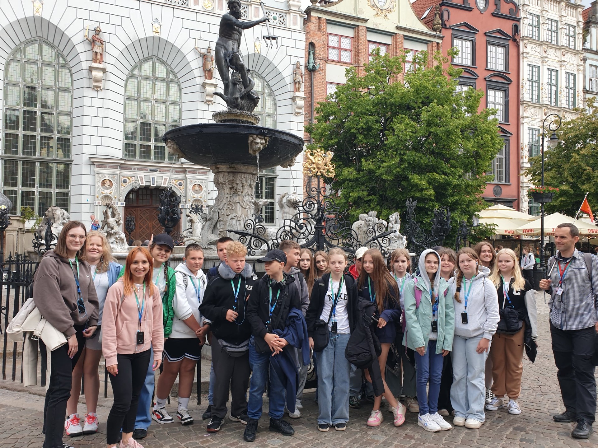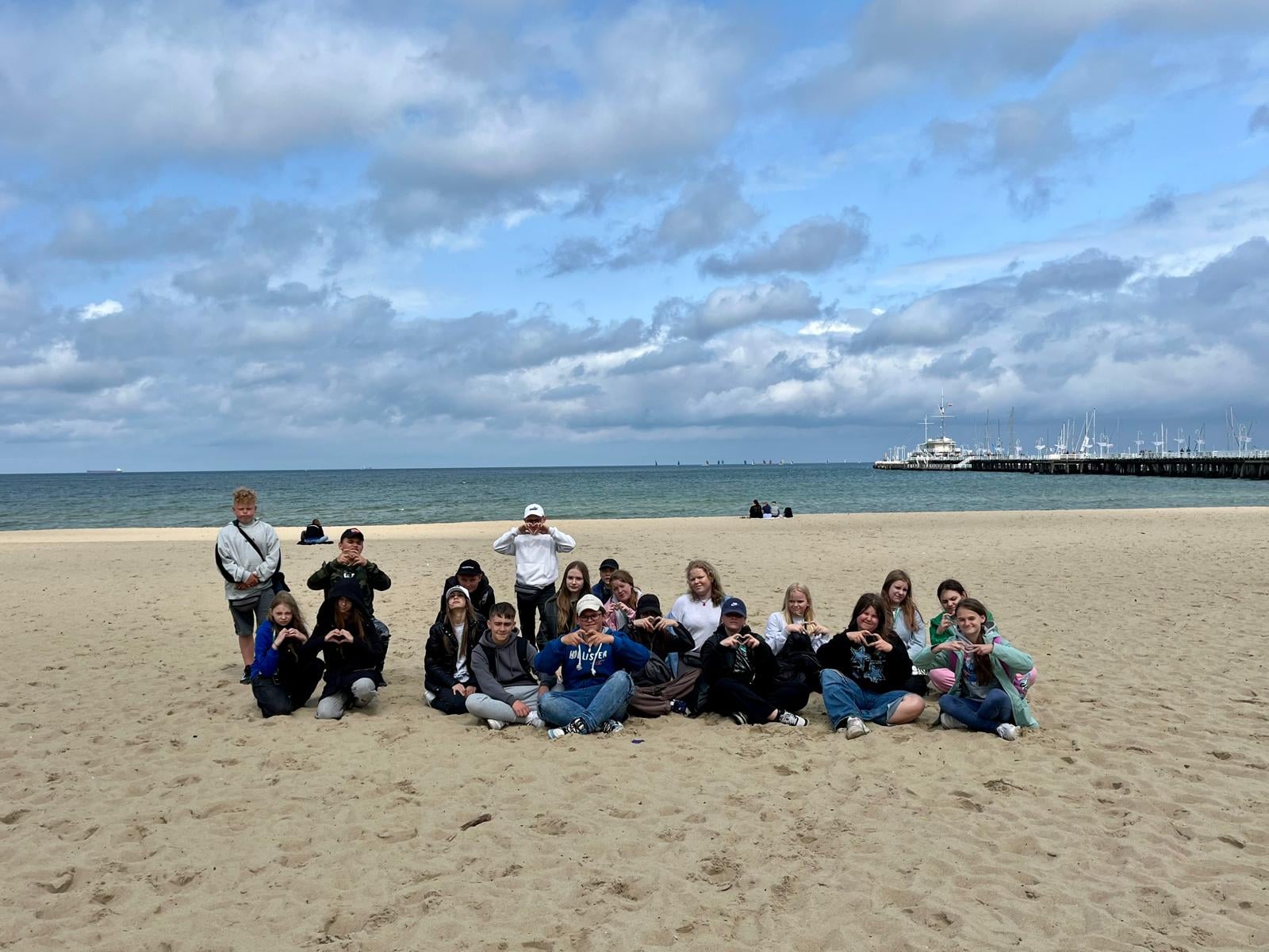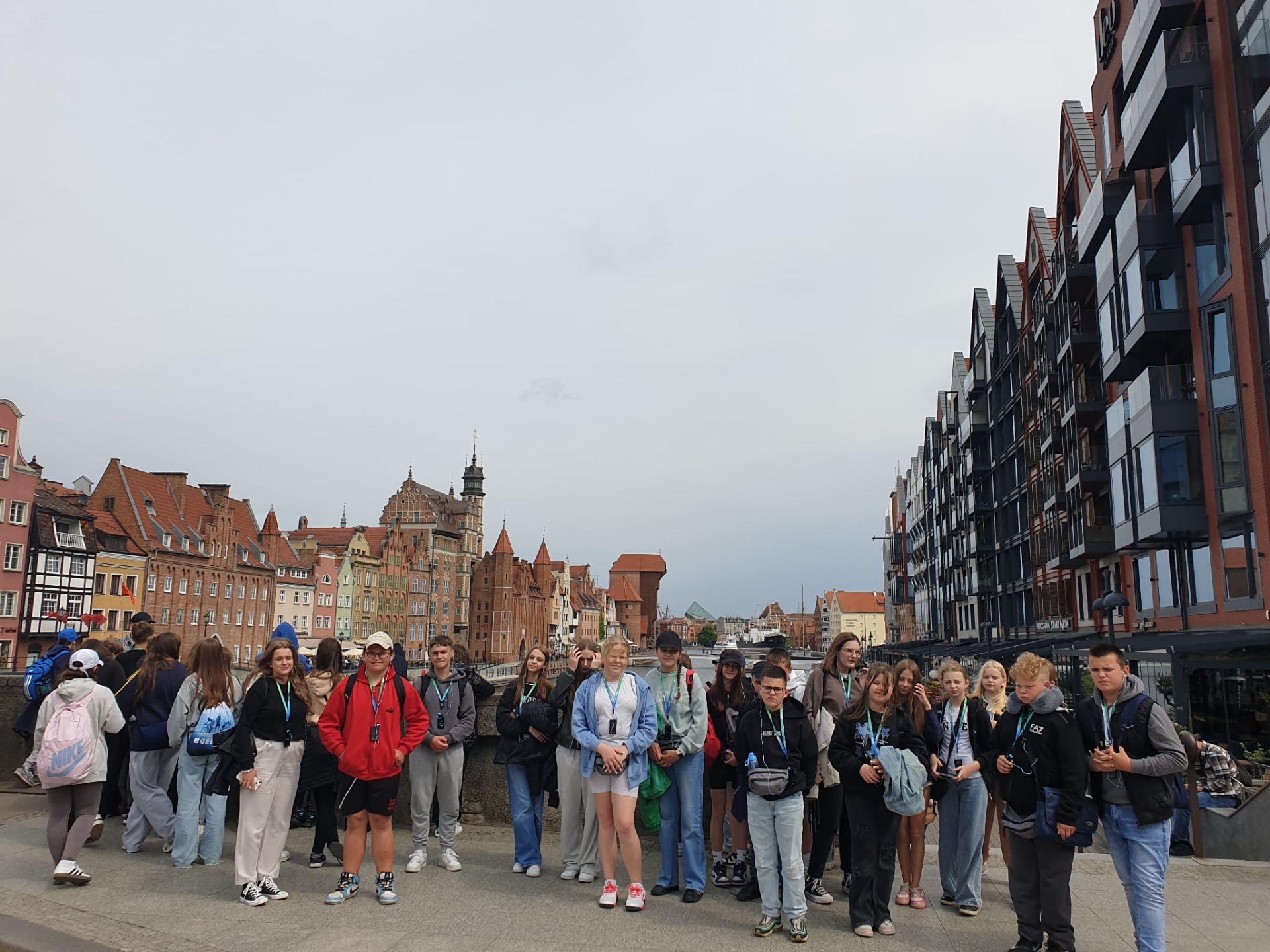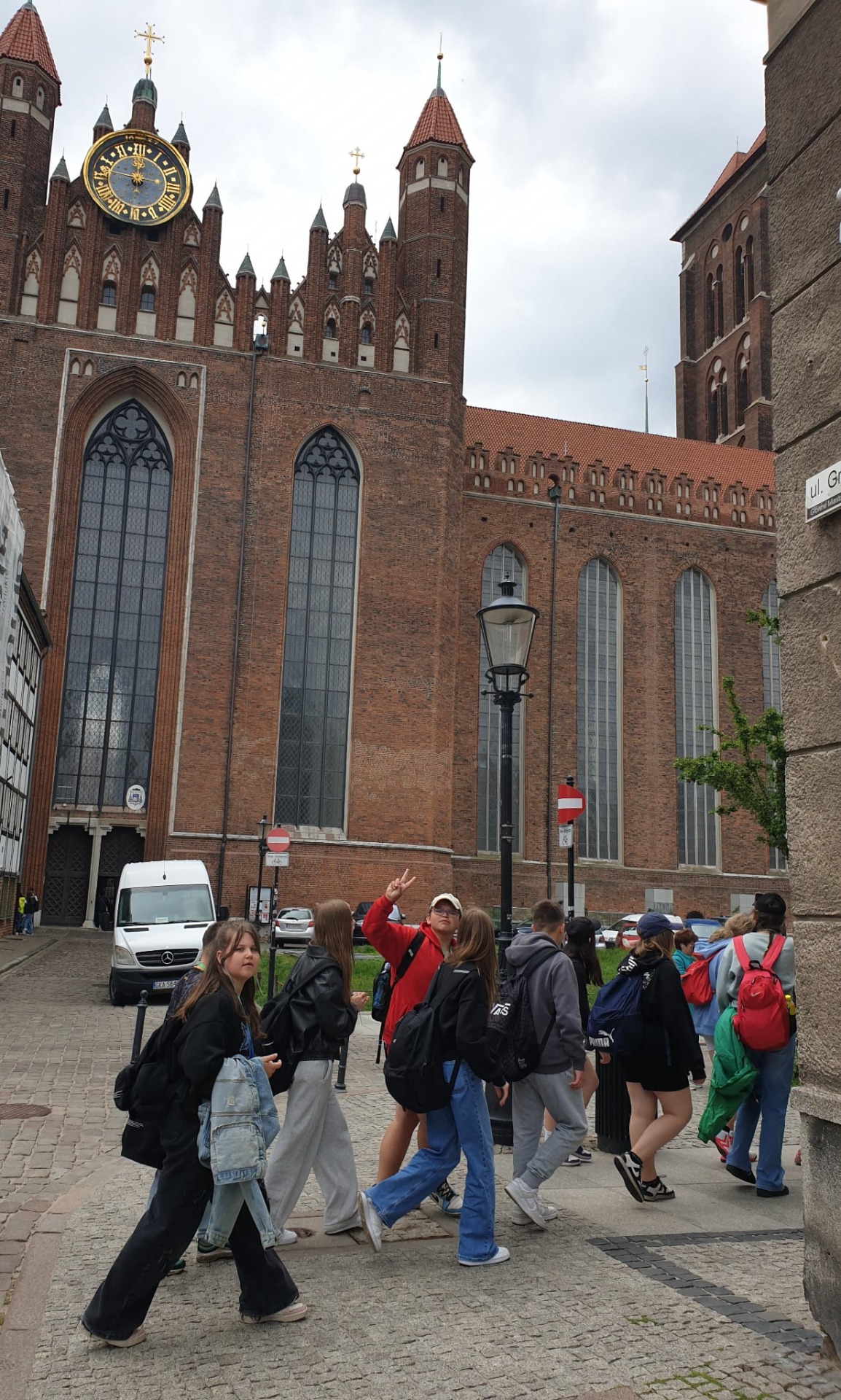 Naszą przygodę rozpoczęliśmy bardzo wcześnie – o 5:30 ruszyliśmy z Trzęśniewa w stronę Gdańska! Po dotarciu na miejsce zwiedzaliśmy Główne Miasto z przewodnikiem. Przeszliśmy przez Bramę Złotą, ulicę Długą i Długi Targ, zobaczyliśmy Ratusz, Dwór Artusa (z zewnątrz), Bramę Zieloną oraz Długie Pobrzeże. Nie zabrakło również spaceru przy Żurawiu i Bazylice Mariackiej. Następnie odwiedziliśmy Westerplatte – spacer po Polu Bitwy, Pomnik Obrońców Wybrzeża i Mogiła Obrońców zrobiły na nas duże wrażenie. Po południu dotarliśmy do Władysławowa i zameldowaliśmy się w hotelu. Po obiadokolacji wybraliśmy się jeszcze na długi spacer Aleją Gwiazd Sportu, by zakończyć dzień pięknym choć deszczowym widokiem na morzem. Mimo intensywnego dnia… nasi uczniowie wciąż mieli dużo energii! Zamiast od razu pójść spać – hotelowe korytarze długo jeszcze tętniły życiem. Cóż, wycieczkowy klimat rządzi się swoimi prawami!