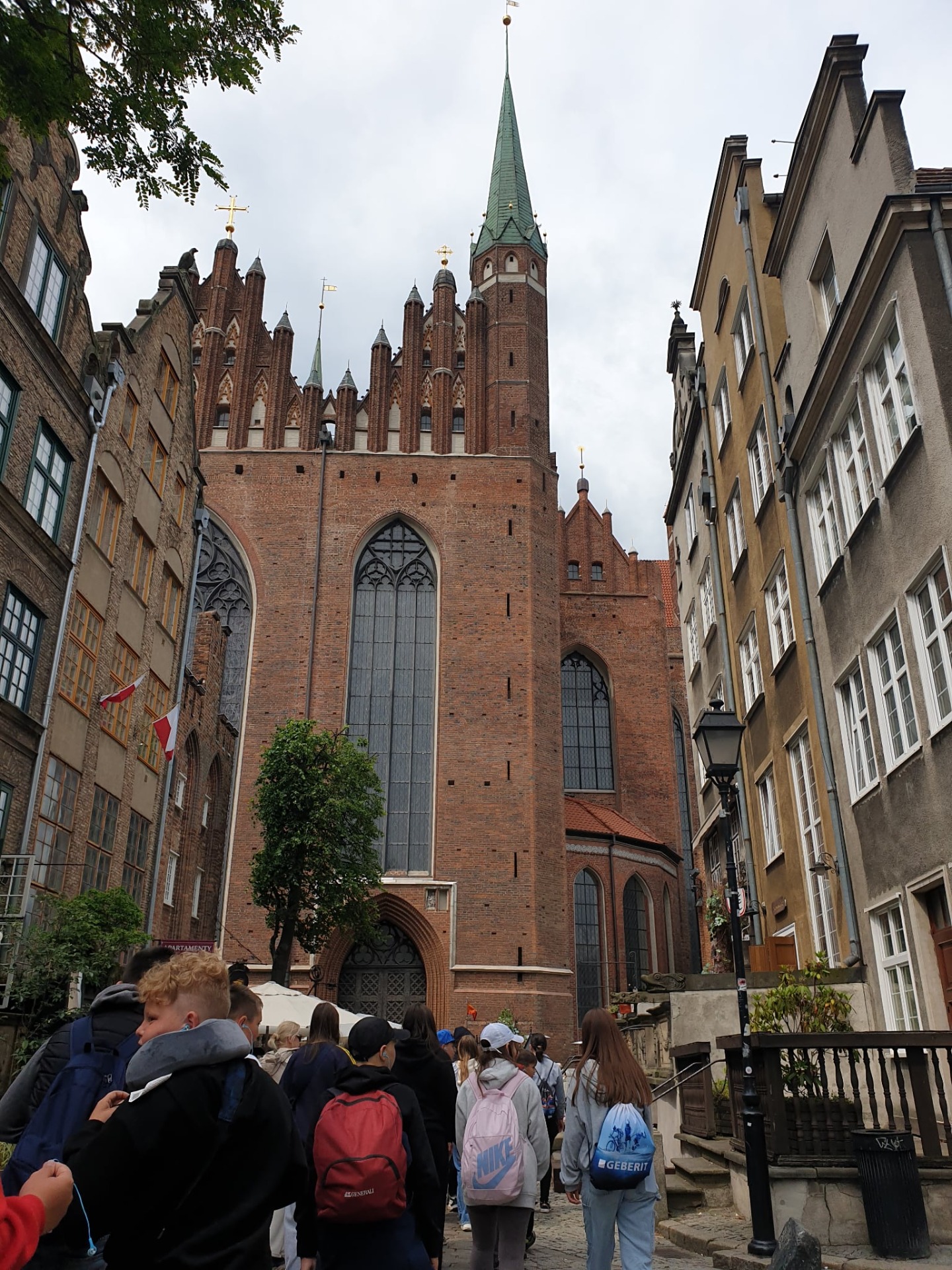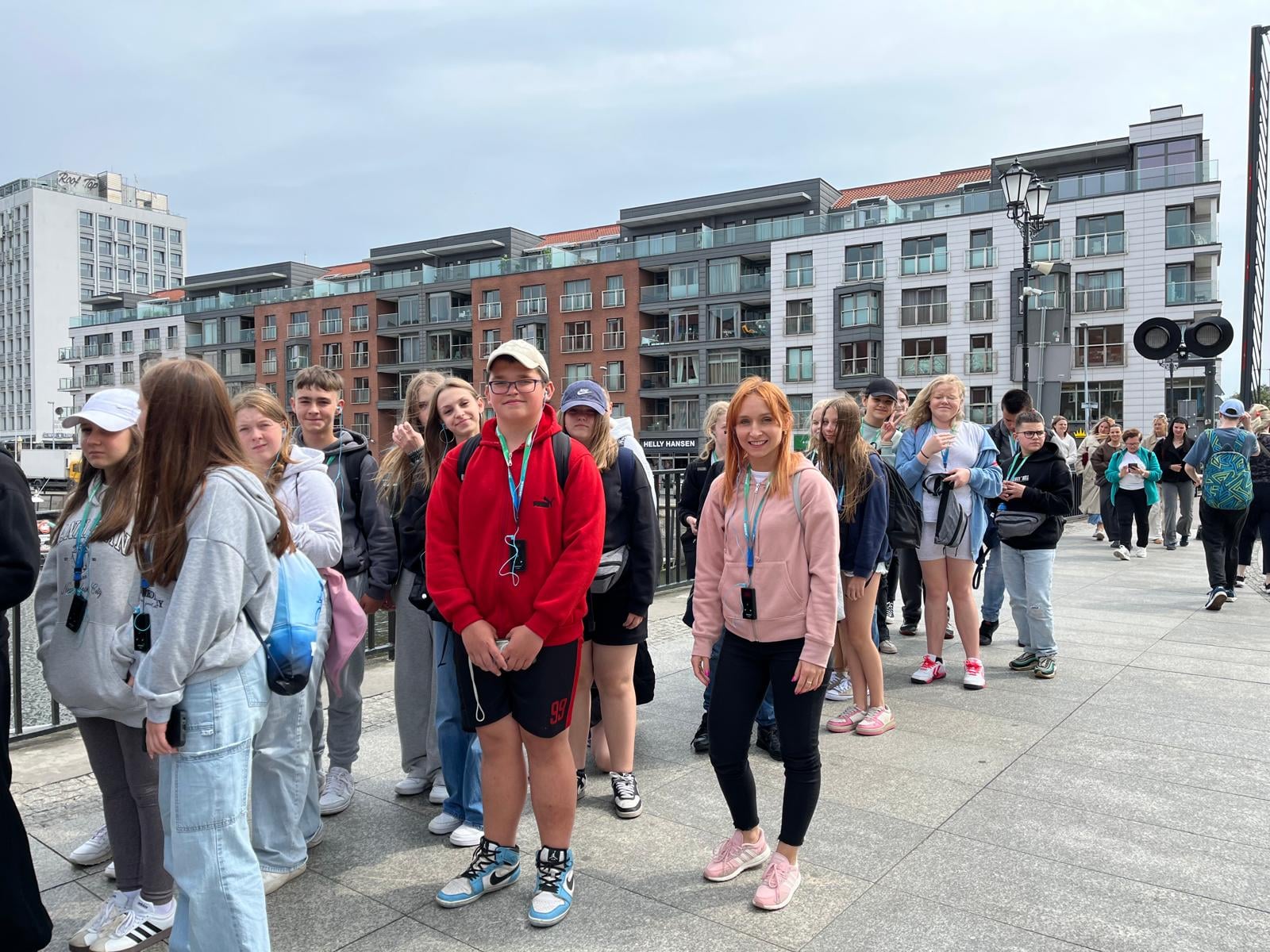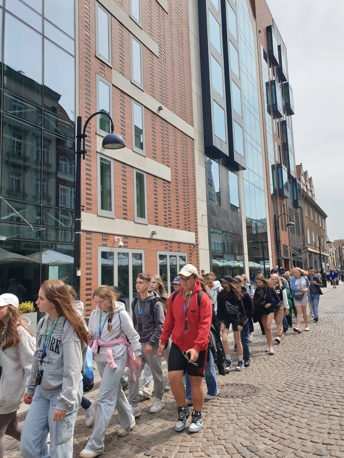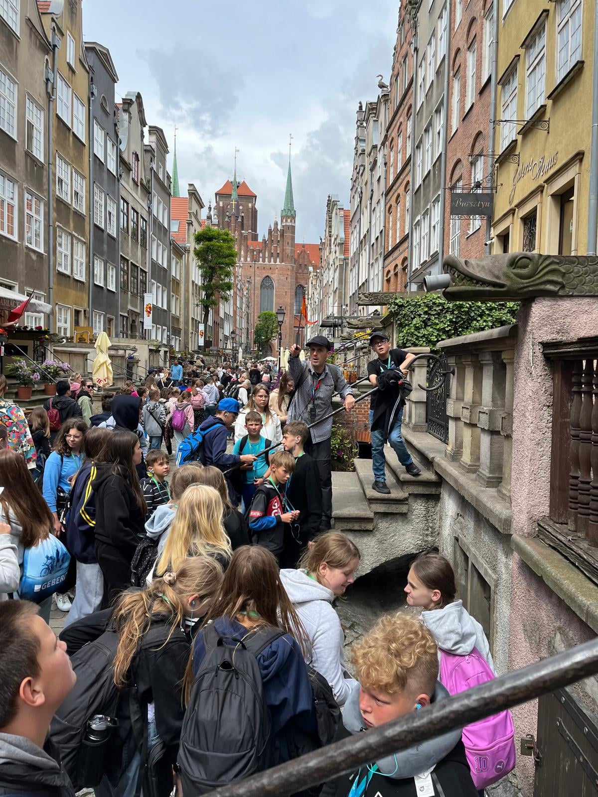 Naszą przygodę rozpoczęliśmy bardzo wcześnie – o 5:30 ruszyliśmy z Trzęśniewa w stronę Gdańska! Po dotarciu na miejsce zwiedzaliśmy Główne Miasto z przewodnikiem. Przeszliśmy przez Bramę Złotą, ulicę Długą i Długi Targ, zobaczyliśmy Ratusz, Dwór Artusa (z zewnątrz), Bramę Zieloną oraz Długie Pobrzeże. Nie zabrakło również spaceru przy Żurawiu i Bazylice Mariackiej. Następnie odwiedziliśmy Westerplatte – spacer po Polu Bitwy, Pomnik Obrońców Wybrzeża i Mogiła Obrońców zrobiły na nas duże wrażenie. Po południu dotarliśmy do Władysławowa i zameldowaliśmy się w hotelu. Po obiadokolacji wybraliśmy się jeszcze na długi spacer Aleją Gwiazd Sportu, by zakończyć dzień pięknym choć deszczowym widokiem na morzem. Mimo intensywnego dnia… nasi uczniowie wciąż mieli dużo energii! Zamiast od razu pójść spać – hotelowe korytarze długo jeszcze tętniły życiem. Cóż, wycieczkowy klimat rządzi się swoimi prawami!