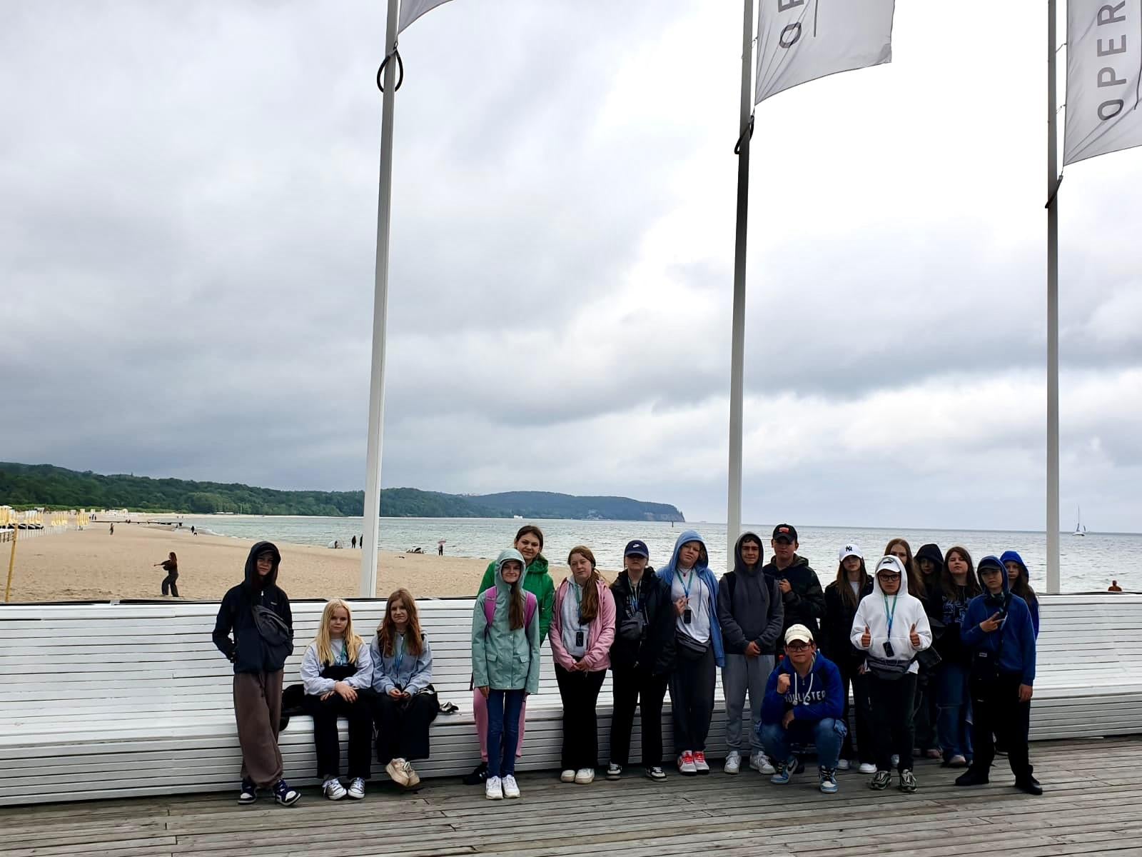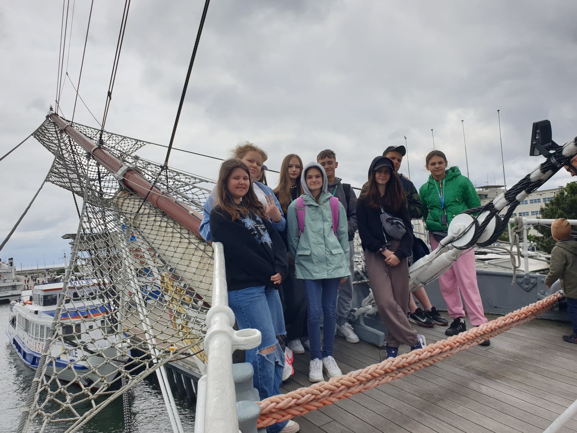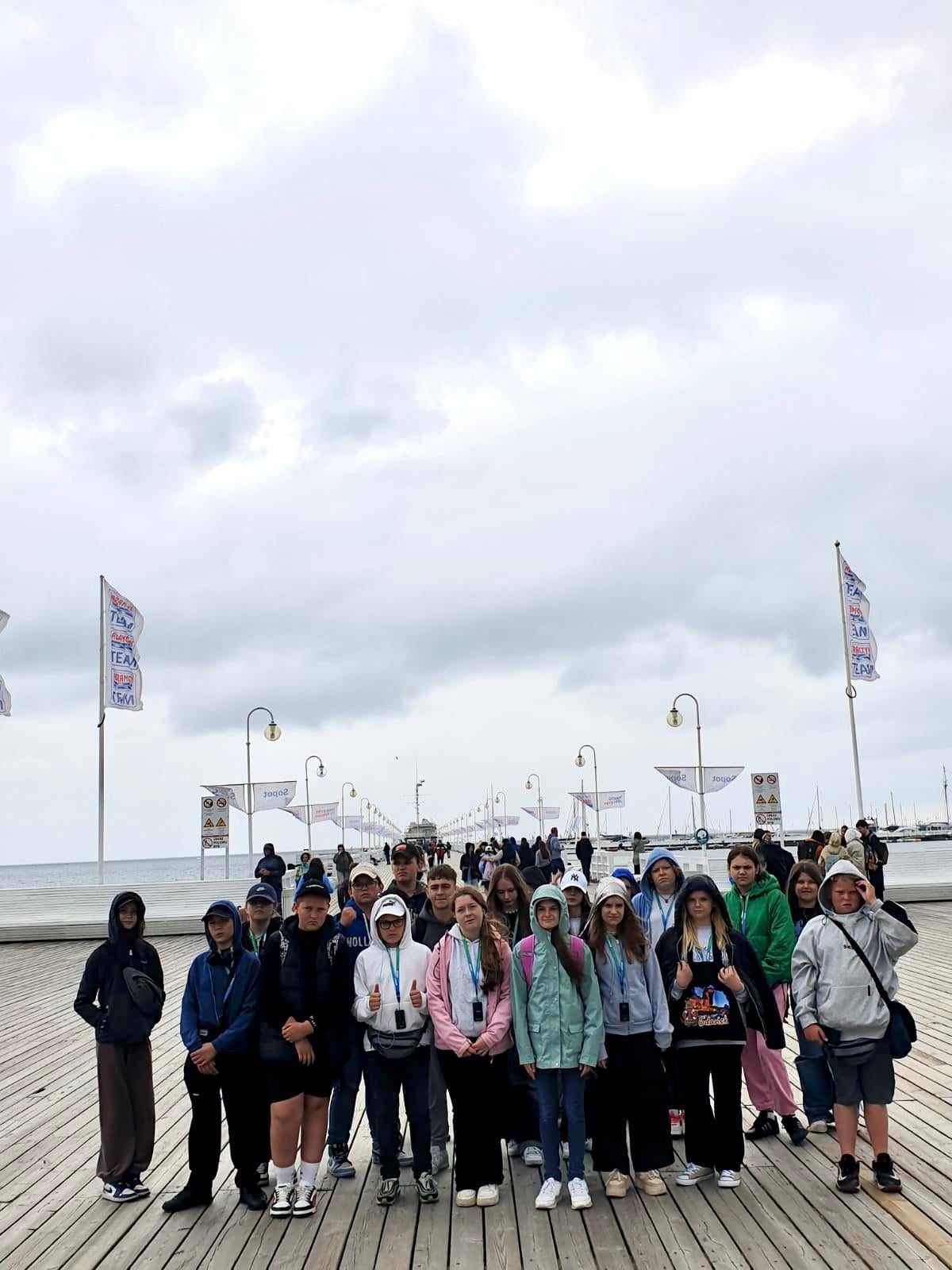 Po porannym śniadaniu i wykwaterowaniu ruszyliśmy do Gdyni. Spacerowaliśmy po Placu Kościuszki i Molo Południowym, zatrzymując się przy Pomniku Żagle. Zobaczyliśmy legendarny okręt ORP Błyskawica (z zewnątrz), a następnie zwiedziliśmy z przewodnikiem żaglowiec Dar Pomorza – wyjątkową perłę polskiej historii morskiej. Następnie udaliśmy się do Sopotu, gdzie odwiedziliśmy Operę Leśną, a potem przeszliśmy się słynnym Sopockim Molo. Spacer ulicą Bohaterów Monte Cassino do Krzywego Domku był świetną okazją na zrobienie ostatnich zdjęć i zakup pamiątek. Zmęczeni, ale pełni niezapomnianych wspomnień, zakończyliśmy naszą dwudniową wycieczkę i wróciliśmy do Trzęśniewa. Dziękujemy wszystkim za cudowną atmosferę i wspólne chwile!