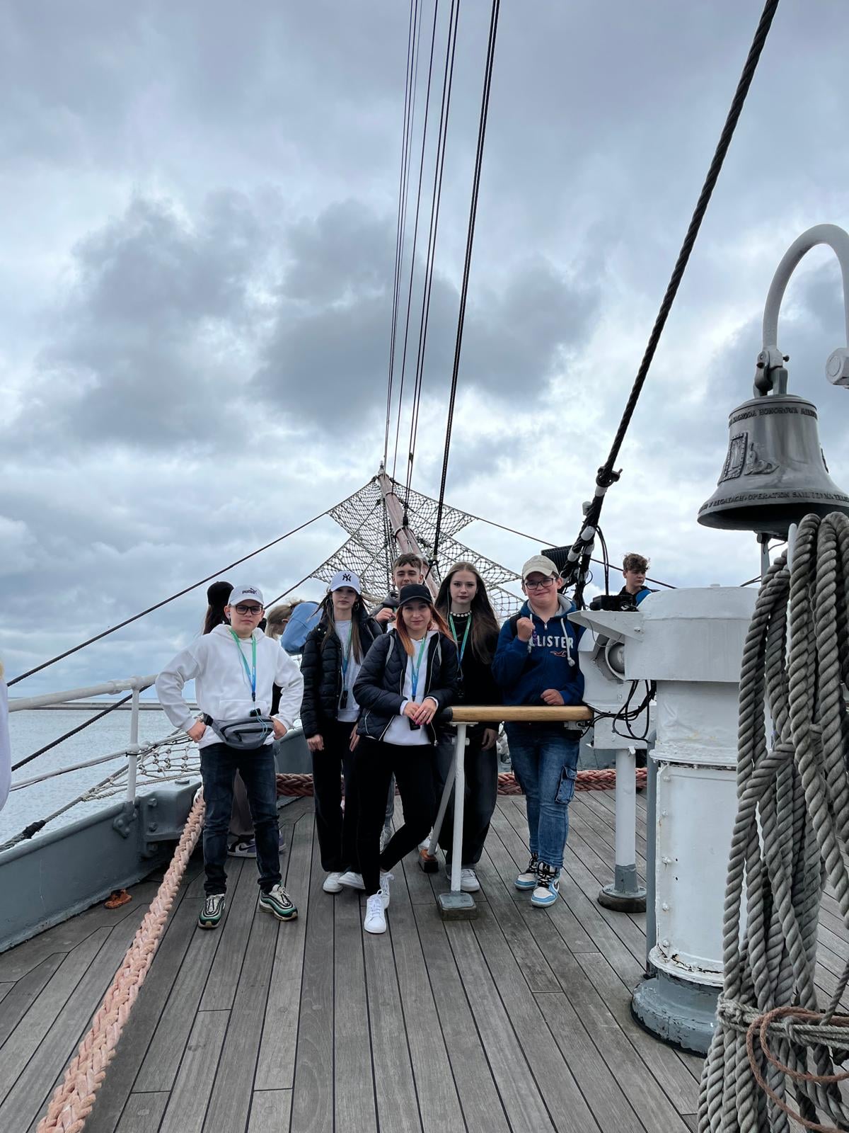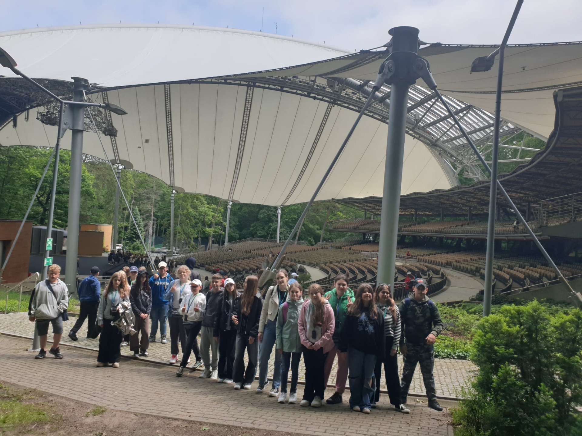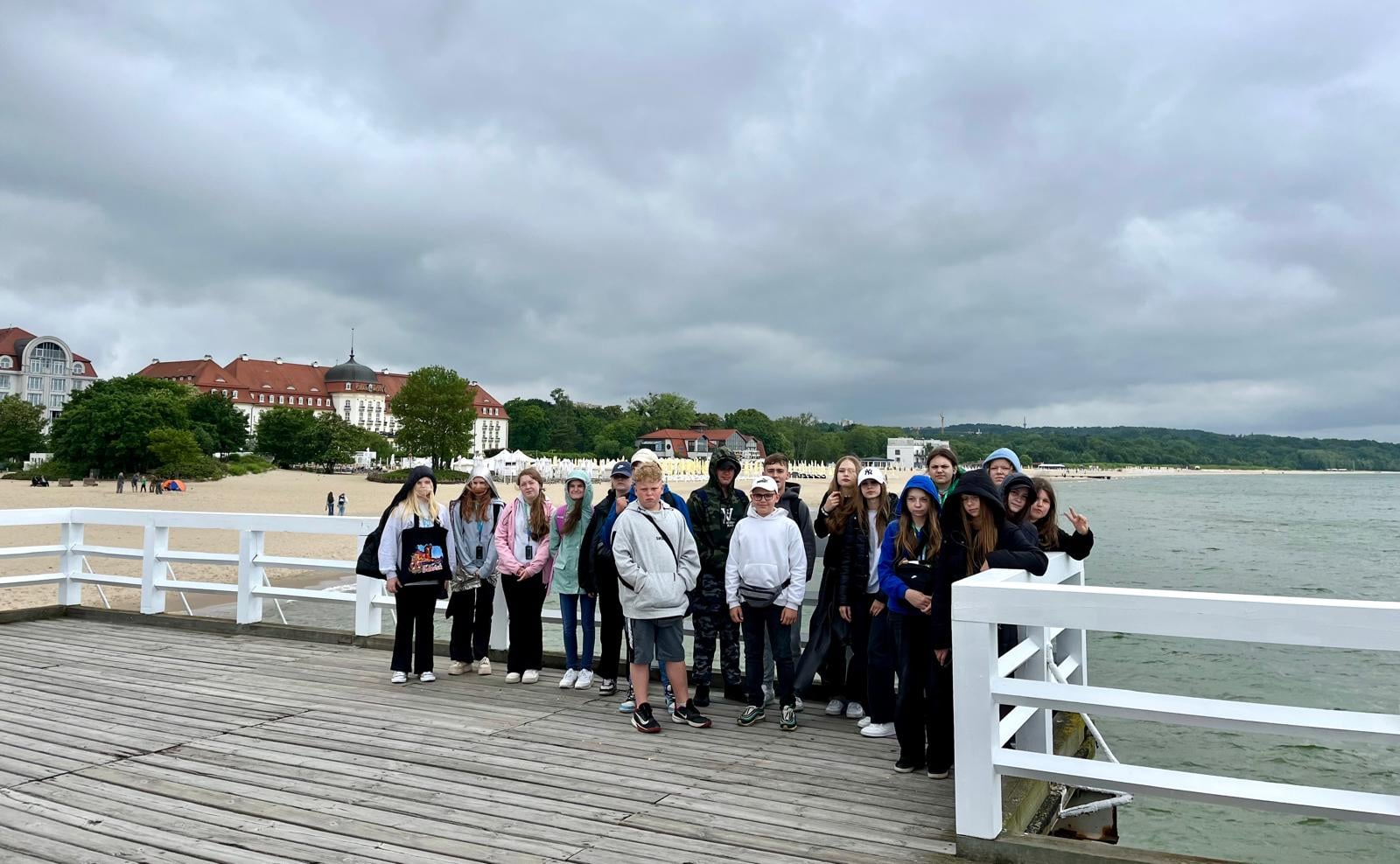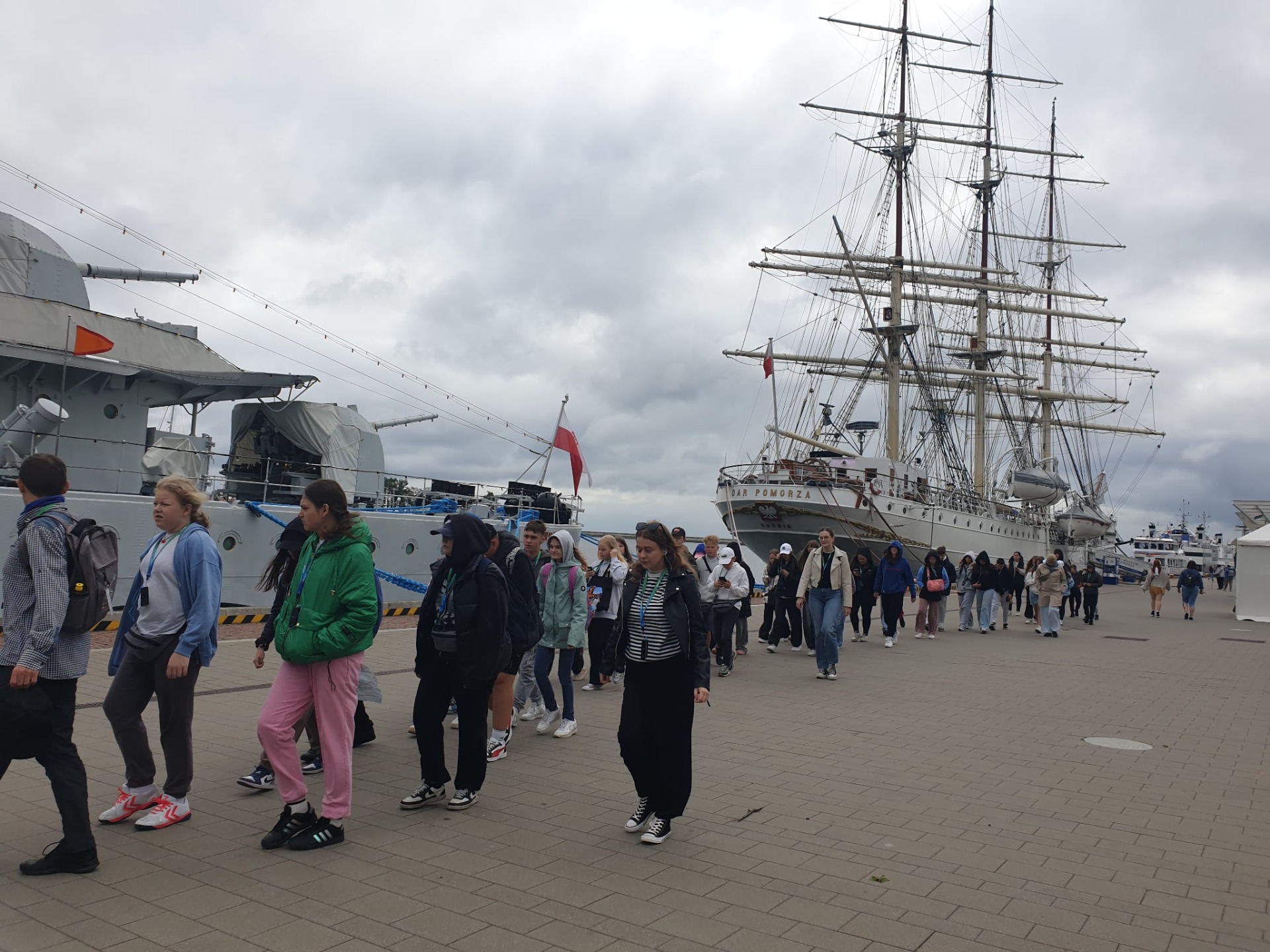 Po porannym śniadaniu i wykwaterowaniu ruszyliśmy do Gdyni. Spacerowaliśmy po Placu Kościuszki i Molo Południowym, zatrzymując się przy Pomniku Żagle. Zobaczyliśmy legendarny okręt ORP Błyskawica (z zewnątrz), a następnie zwiedziliśmy z przewodnikiem żaglowiec Dar Pomorza – wyjątkową perłę polskiej historii morskiej. Następnie udaliśmy się do Sopotu, gdzie odwiedziliśmy Operę Leśną, a potem przeszliśmy się słynnym Sopockim Molo. Spacer ulicą Bohaterów Monte Cassino do Krzywego Domku był świetną okazją na zrobienie ostatnich zdjęć i zakup pamiątek. Zmęczeni, ale pełni niezapomnianych wspomnień, zakończyliśmy naszą dwudniową wycieczkę i wróciliśmy do Trzęśniewa. Dziękujemy wszystkim za cudowną atmosferę i wspólne chwile!