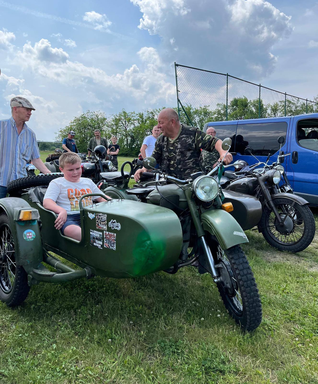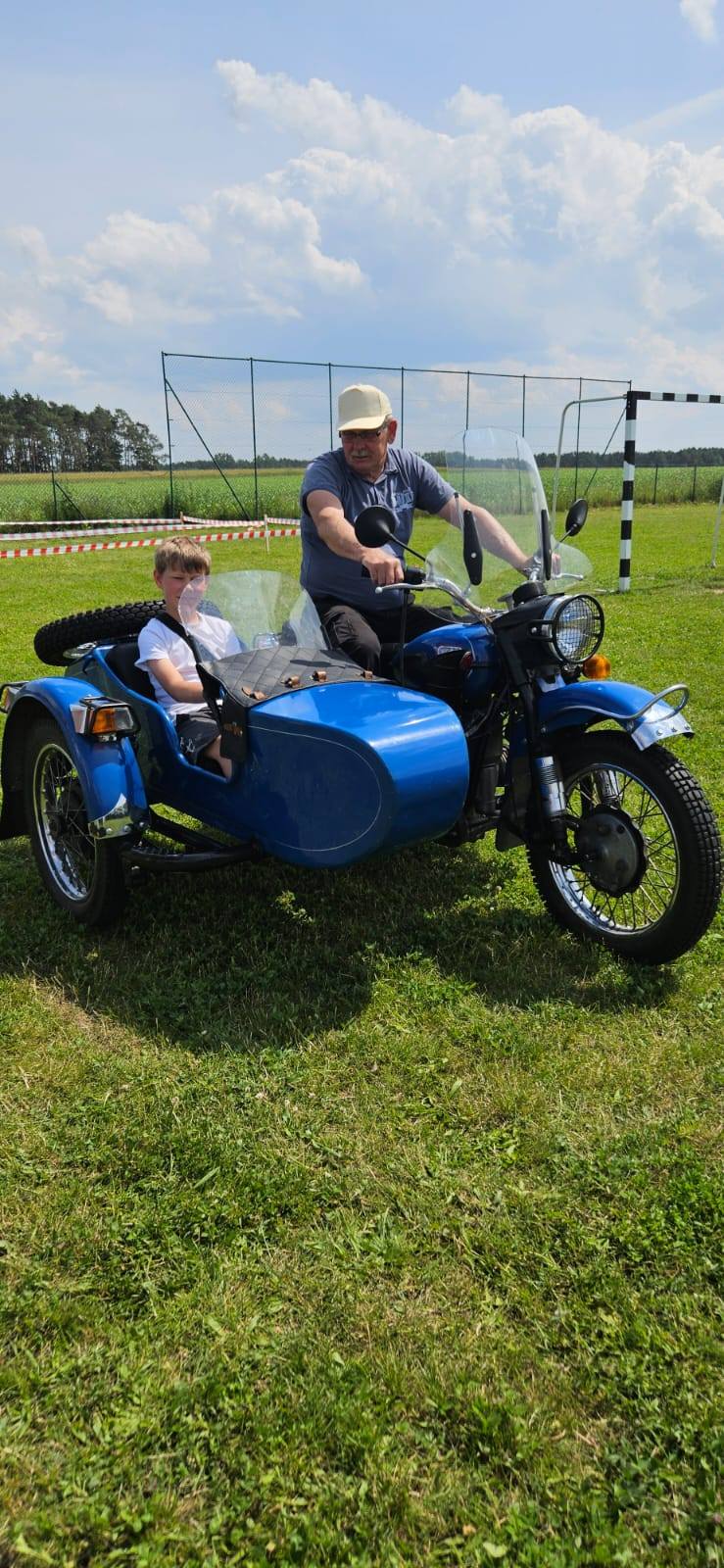Ogromne zainteresowanie wzbudziła także wizyta motocyklistów, którzy zaprezentowali ciekawe modele starych motocykli – niektóre z nich wyposażone były w kosze dla pasażerów. Dodatkową atrakcją był przejazd wokół boiska w motocyklowym koszu, który dostarczył dzieciom i dorosłym mnóstwa emocji!