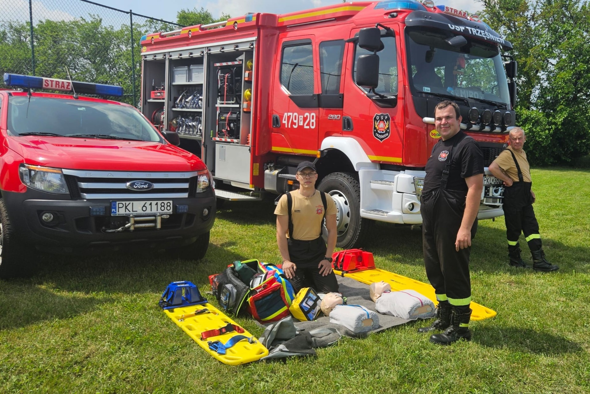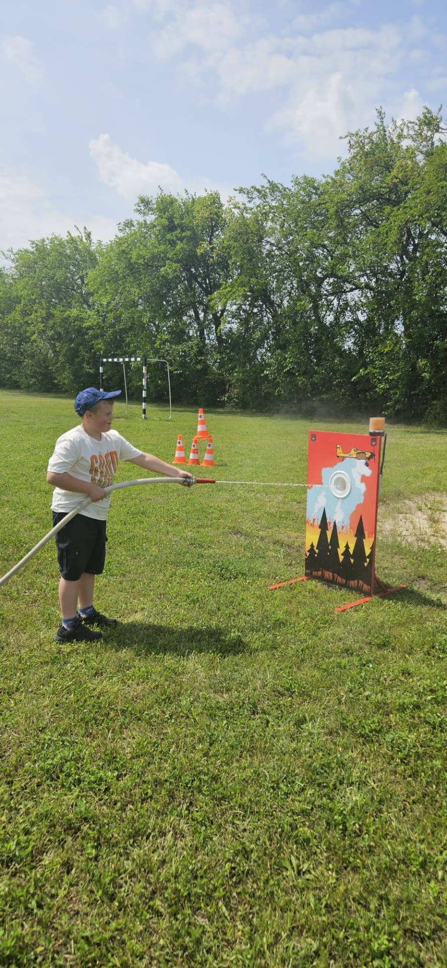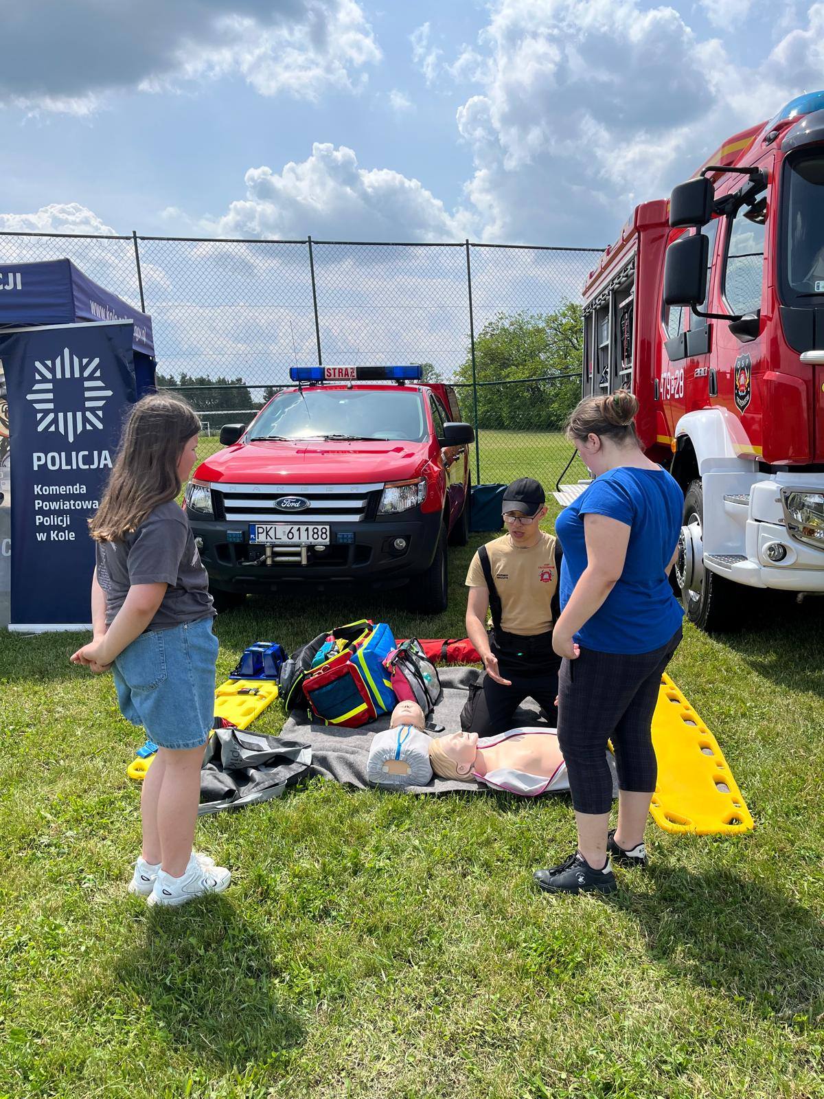 Ochotnicza Straż Pożarna z Trzęśniewa natomiast uczyła zasad udzielania pierwszej pomocy i przygotowała zręcznościową zabawę – celowanie strumieniem wody do wyznaczonego celu, co dostarczyło mnóstwo frajdy!