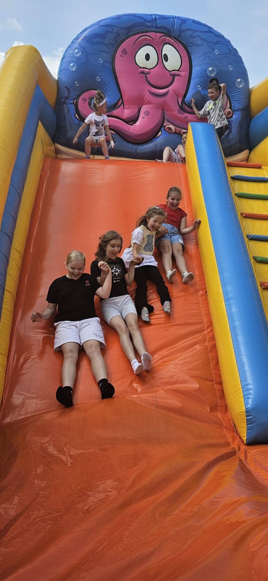 Dzięki wsparciu Rady Rodziców mogliśmy zapewnić najmłodszym wiele radości: dmuchaniec, pyszne kiełbaski z grilla, watę cukrową oraz – już tradycyjnie obecna na naszych festynach – Fotobudka 360°. Nie zabrakło też stołu uginającego się pod domowymi ciastami – wielkie podziękowania dla rodziców z każdej klasy za ich wypieki i zaangażowanie. Datki wrzucane do puszki zasilą fundusze Rady Rodziców.