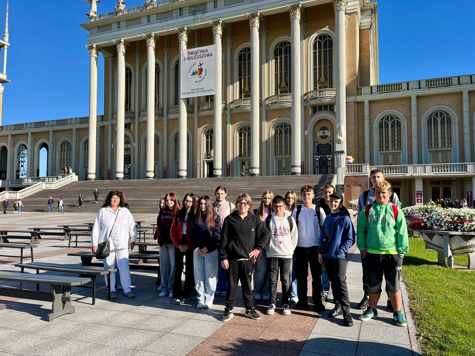 W dniu 24 września uczniowie naszej szkoły uczestniczyli w Diecezjalnej Pielgrzymce do Sanktuarium Matki Bożej Licheńskiej. Wydarzenie to zgromadziło młodzież z wielu parafii naszej diecezji, aby wspólnie przeżyć czas modlitwy, pogłębiania wiary i integracji. Program pielgrzymki obejmował m.in.: zawiązanie wspólnoty, konferencję duchową, świadectwa wiary oraz uroczystą Eucharystię w bazylice pod przewodnictwem biskupa włocławskiego Krzysztofa Wętkowskiego. Uczniowie klas ósmych szczególnie prosili Boga i Maryję o dobre przygotowanie do sakramentu bierzmowania i o jak najlepsze wyniki egzaminu. Podczas pobytu w sanktuarium znaleźliśmy również czas, aby wejść na wieżę widokową, z której rozciąga się piękna panorama okolicy oraz wyciszyć się podczas modlitwy na Golgocie. Oczywiście w programie naszego wyjazdu nie mogło zabraknąć wizyty w restauracji McDonald's. Pełni radości i wdzięczności wróciliśmy do domów, zabierając ze sobą niezapomniane wspomnienia i duchowe umocnienie.