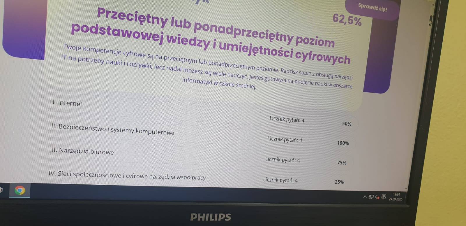 Test był dla naszych uczniów nie tylko wyzwaniem, ale i świetną lekcją praktycznego wykorzystania technologii, a na koniec każdy otrzymał imienny certyfikat potwierdzający swoje umiejętności.