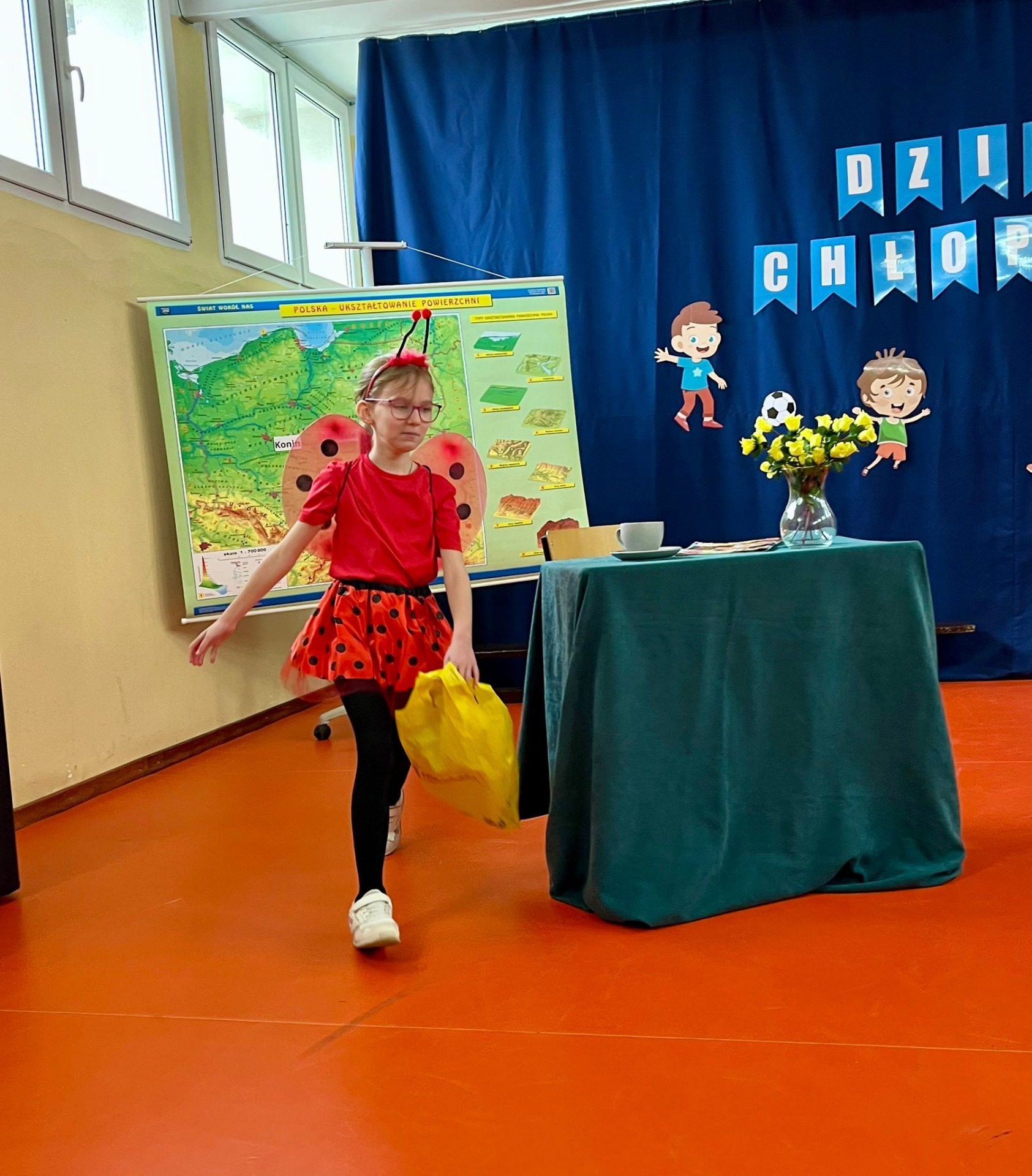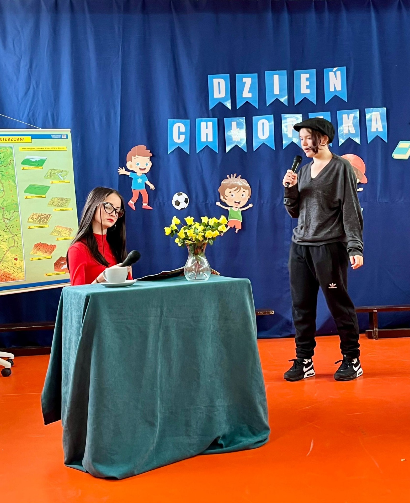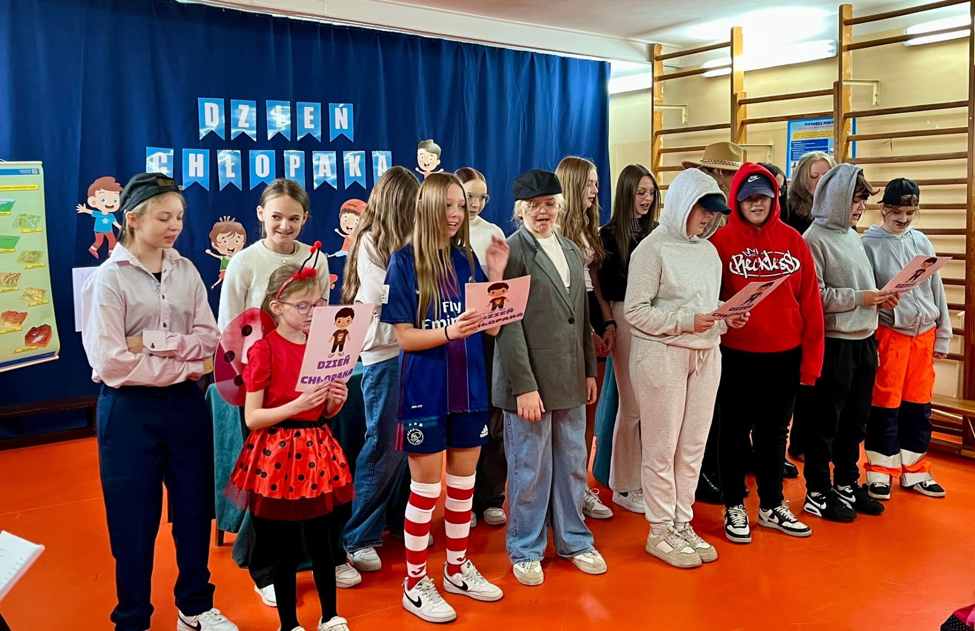W tym roku świętowaliśmy Dzień Chłopaka w naprawdę wyjątkowy sposób! Najpierw odbył się specjalny apel, podczas którego uczennice z humorem i pomysłowością przygotowały program pełen śmiechu i zabawy. Były wiadomości z kraju i ze świata, prognoza pogody, sportowe ciekawostki, a nawet pokaz mody „dla chłopaków i panów nauczycieli” – wszystkie propozycje wzbudziły uśmiechy na twarzach chłopców i publiczności.