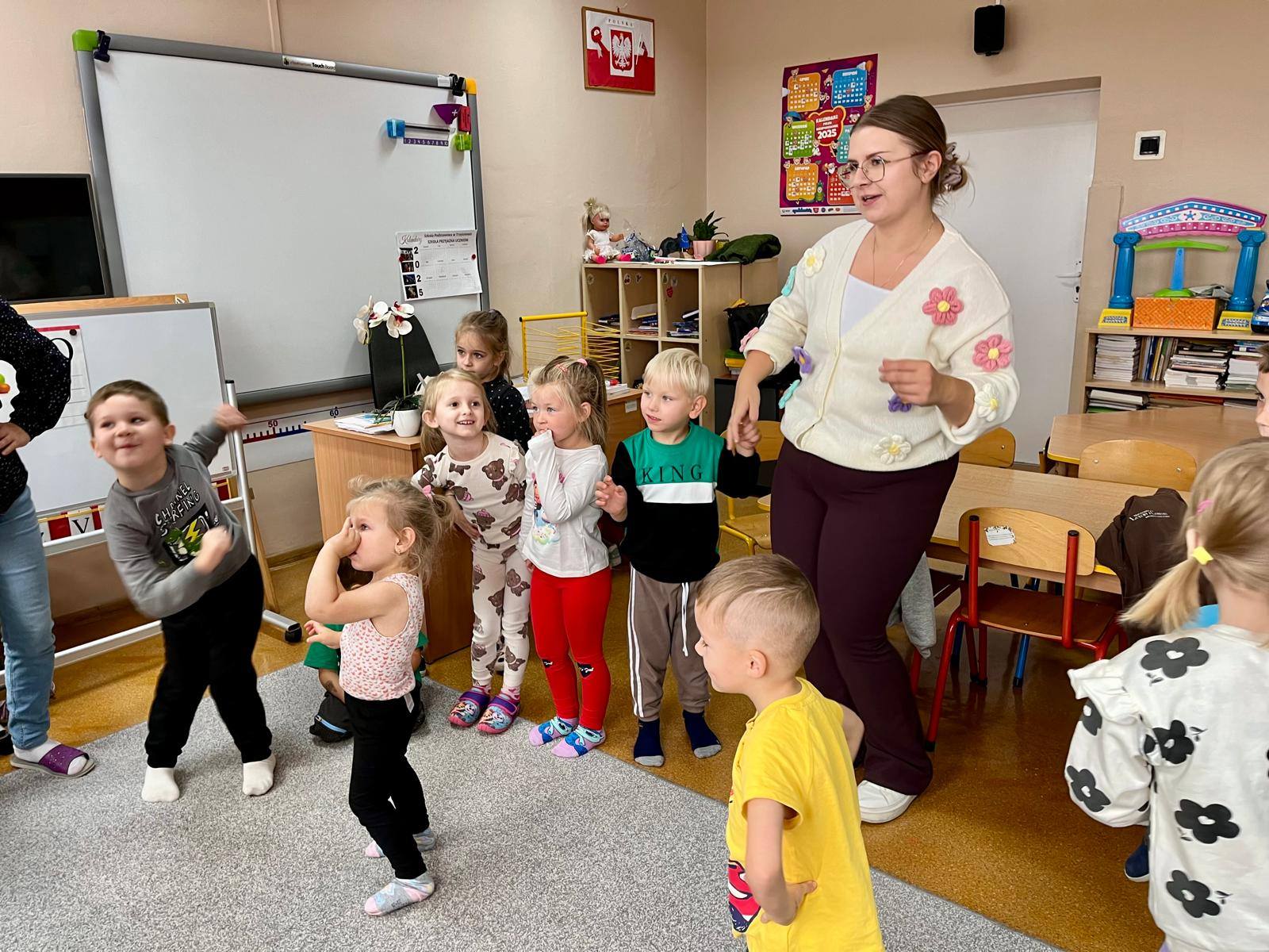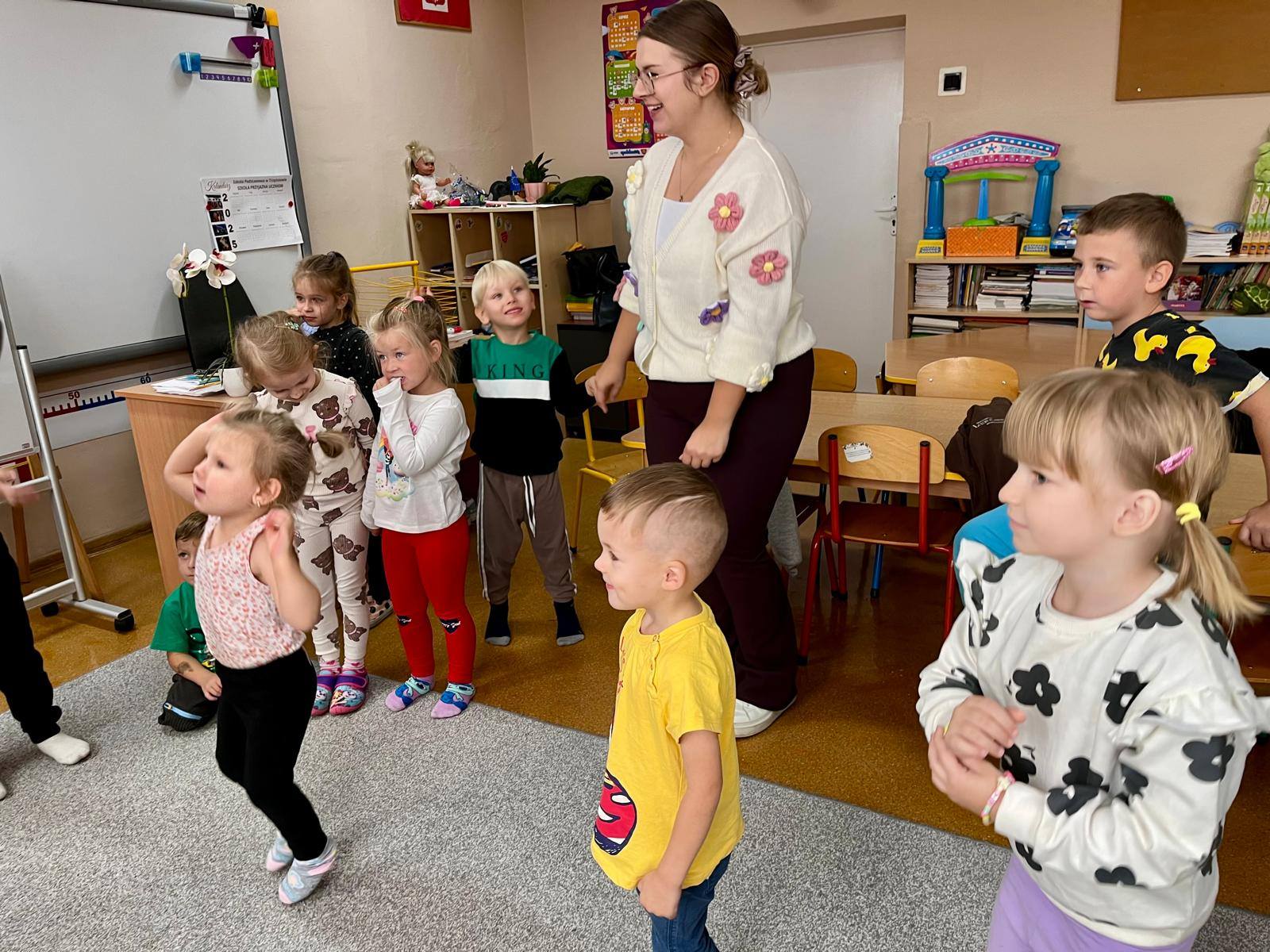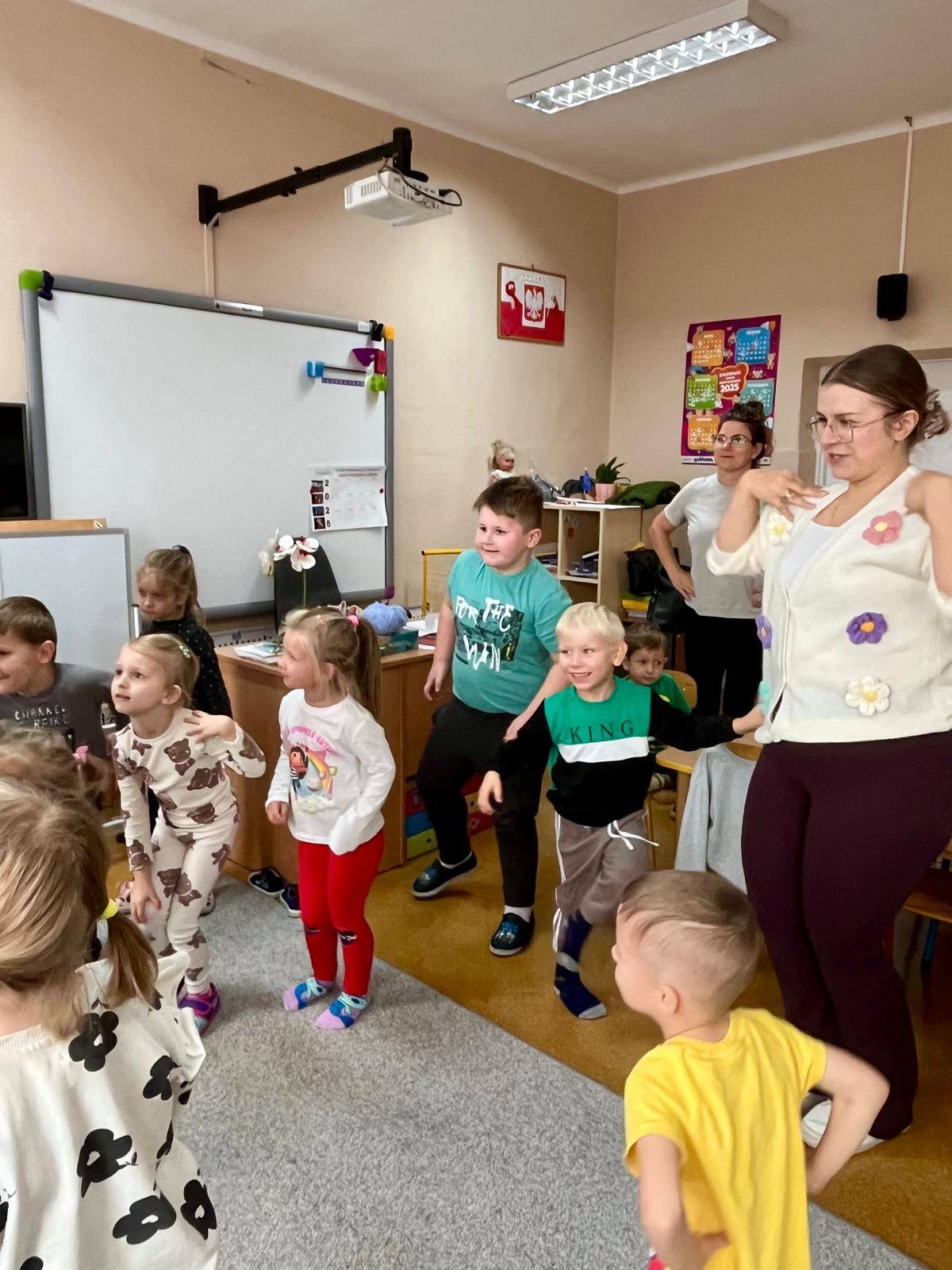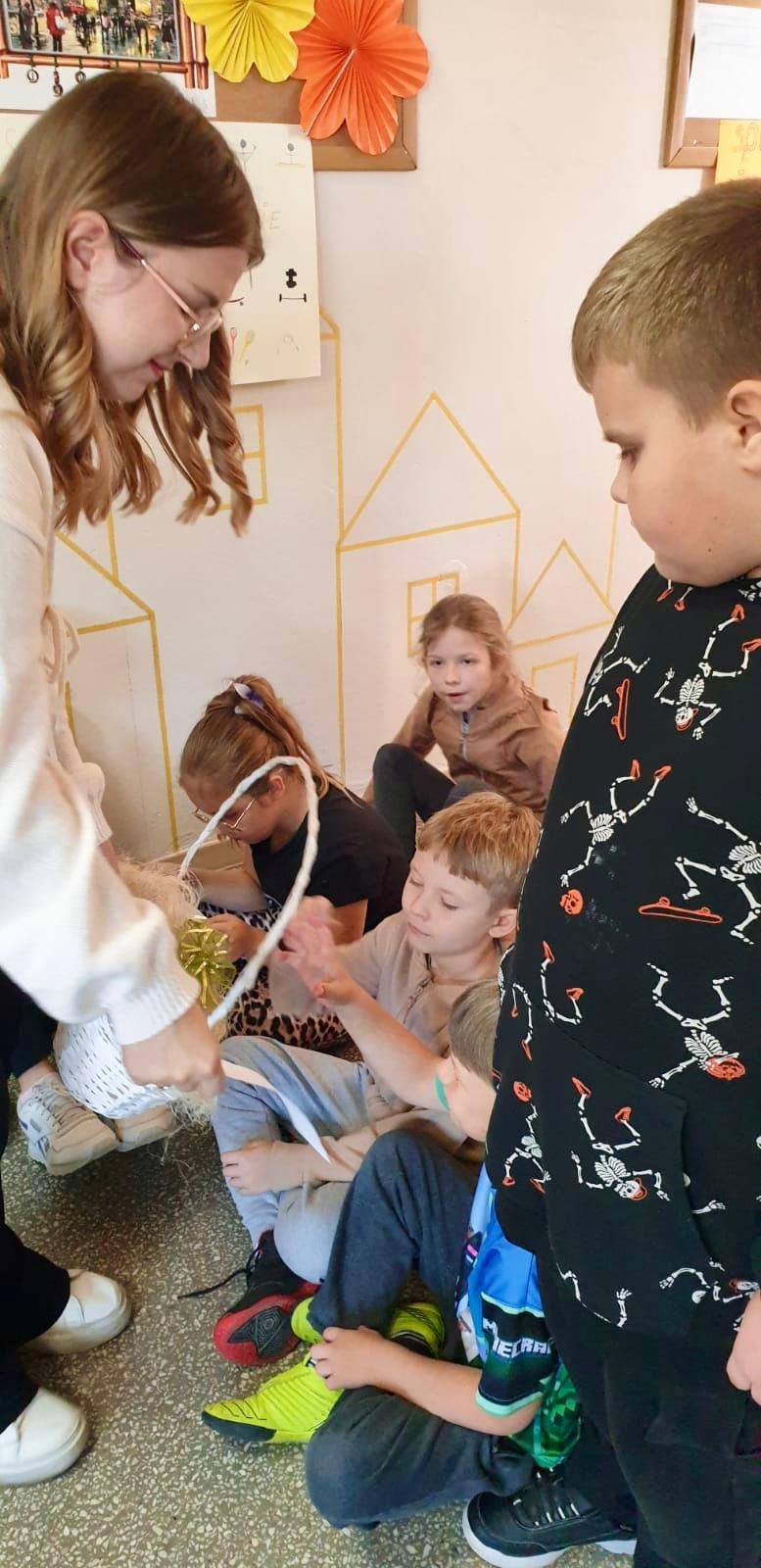 W kolejnych dniach uczniowie uczestniczyli w zajęciach profilaktycznych, podczas których tworzyli plakaty z ważnymi przesłaniami o przeciwdziałaniu przemocy. Nie zabrakło też wspólnych aktywności – zabawy z włóczką, która uczyła współpracy, oraz tańca integracyjnego, który wprowadził wszystkich w doskonały nastrój. Dzieci kolorowały również znak STOP jako symbol sprzeciwu wobec przemocy – prosty, ale bardzo wymowny gest.