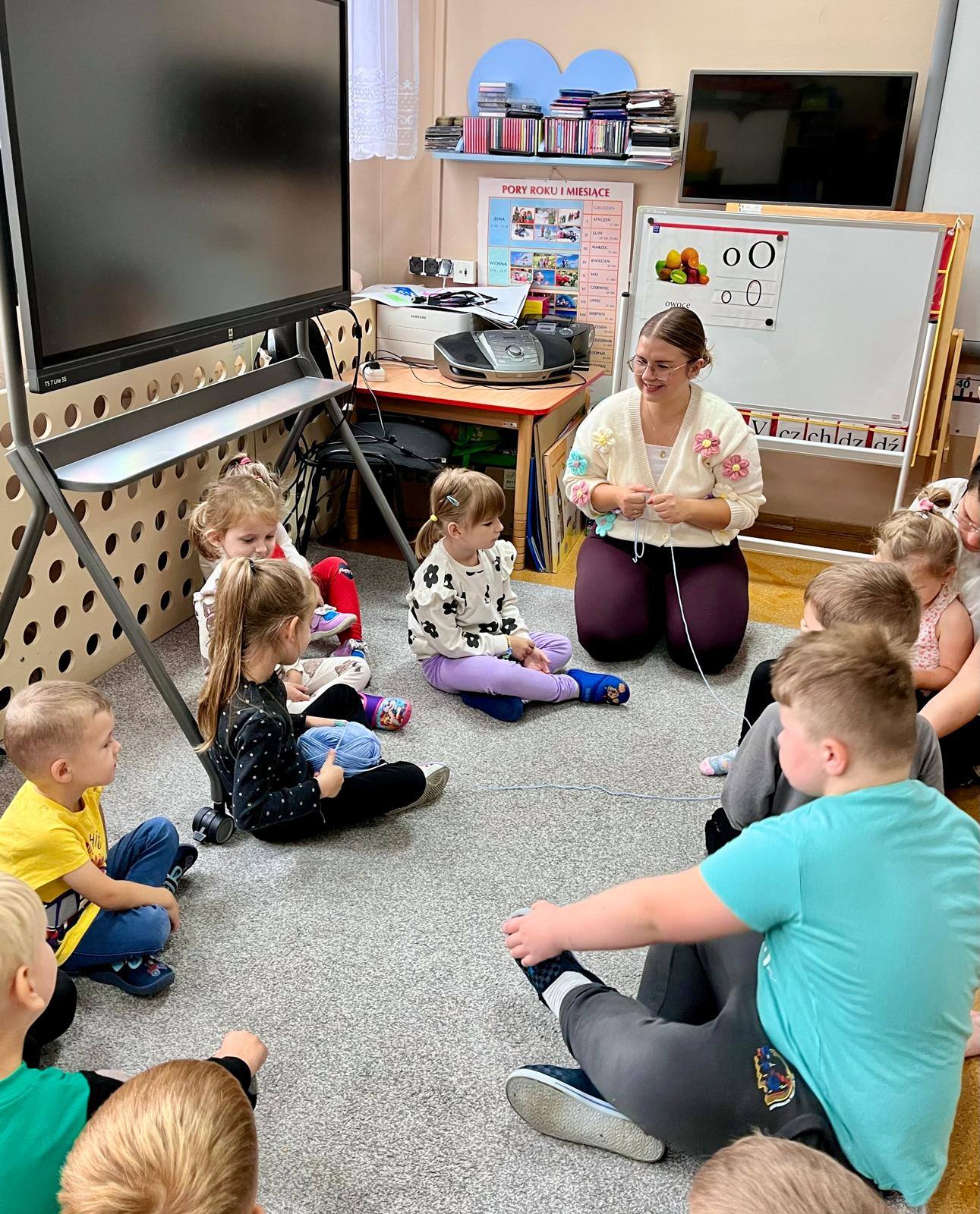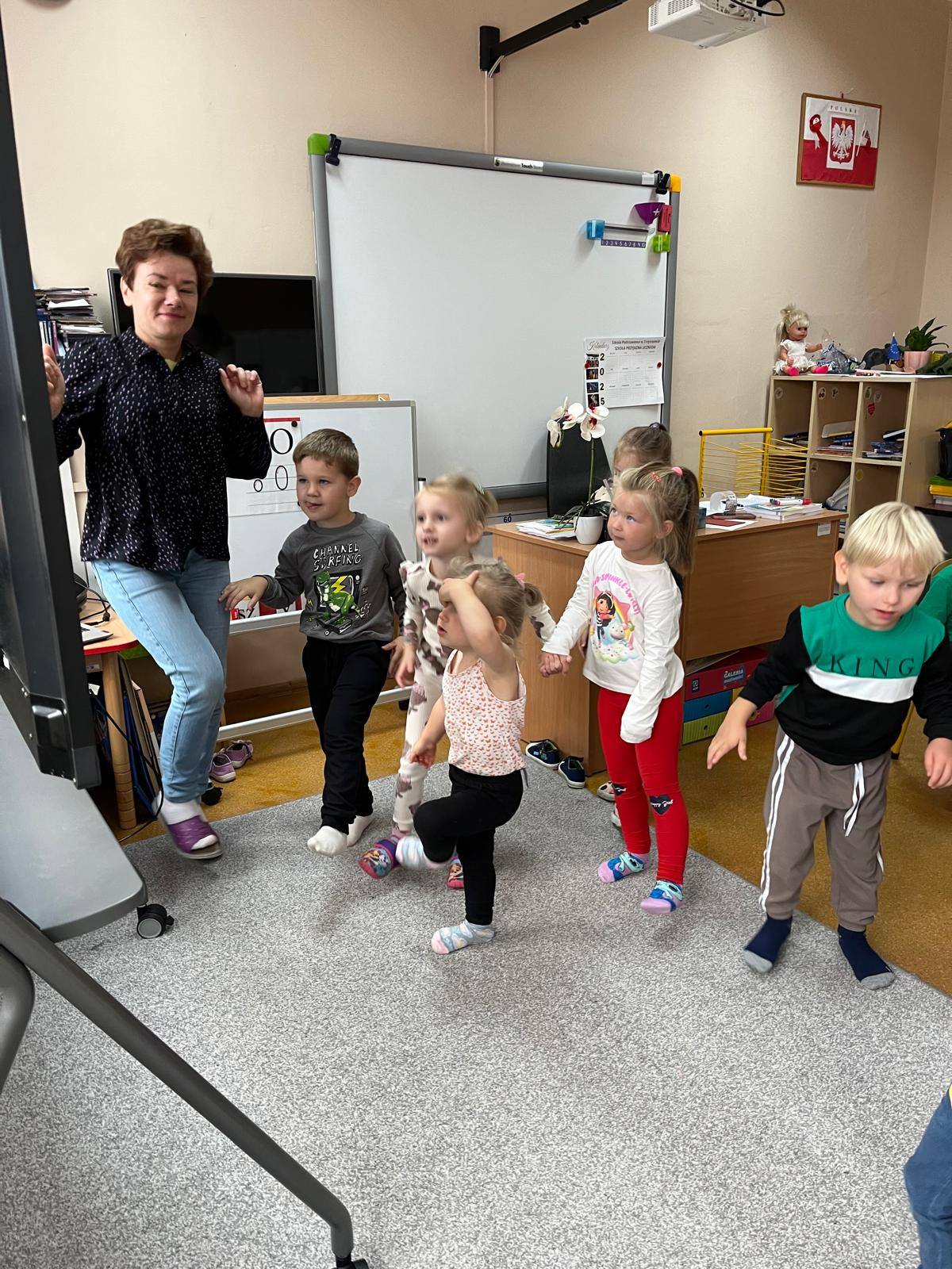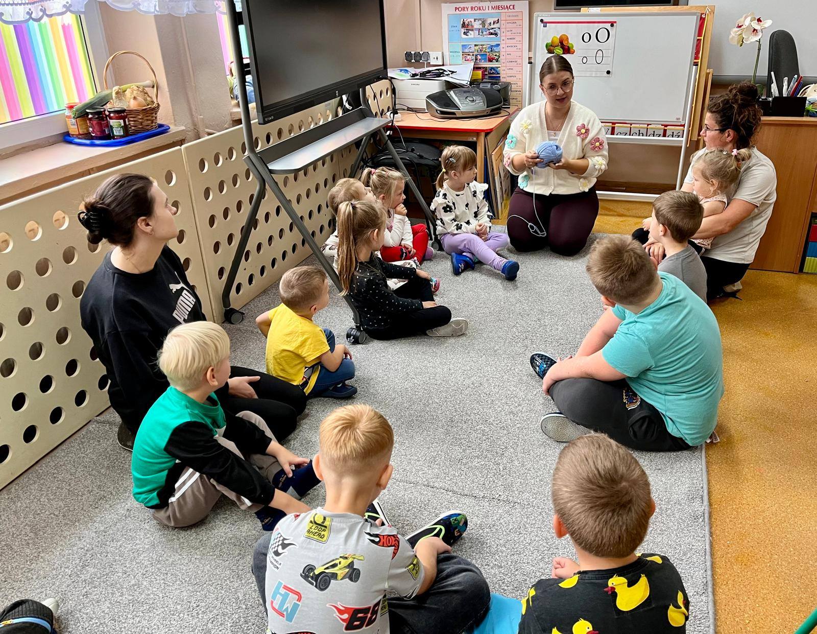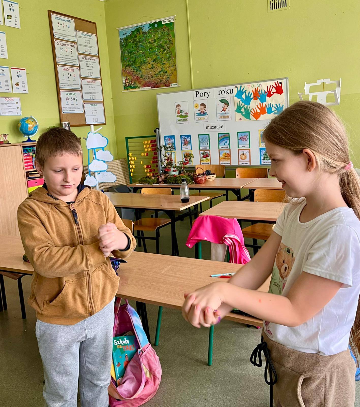 W kolejnych dniach uczniowie uczestniczyli w zajęciach profilaktycznych, podczas których tworzyli plakaty z ważnymi przesłaniami o przeciwdziałaniu przemocy. Nie zabrakło też wspólnych aktywności – zabawy z włóczką, która uczyła współpracy, oraz tańca integracyjnego, który wprowadził wszystkich w doskonały nastrój. Dzieci kolorowały również znak STOP jako symbol sprzeciwu wobec przemocy – prosty, ale bardzo wymowny gest.