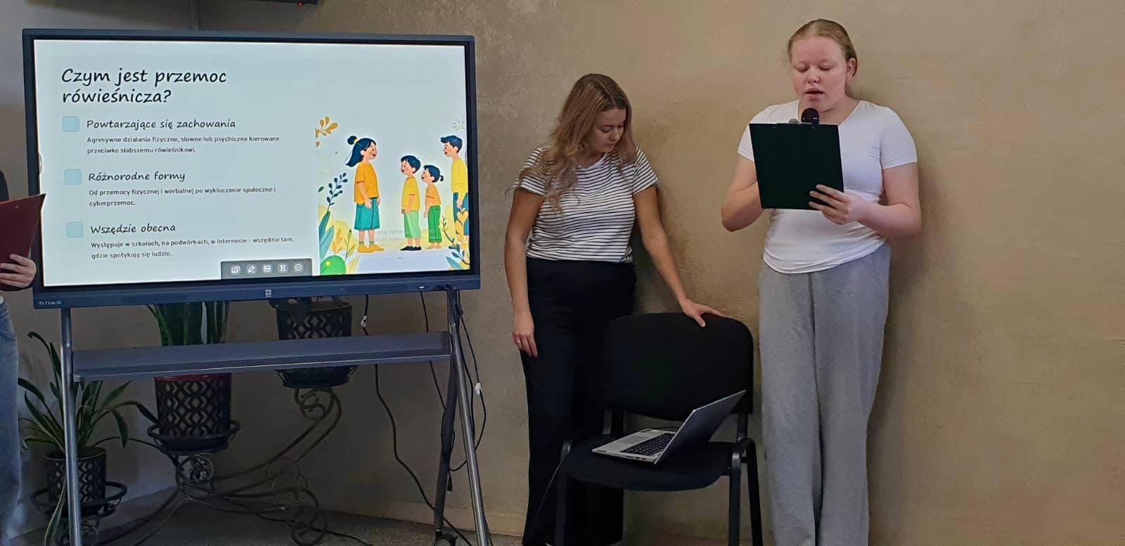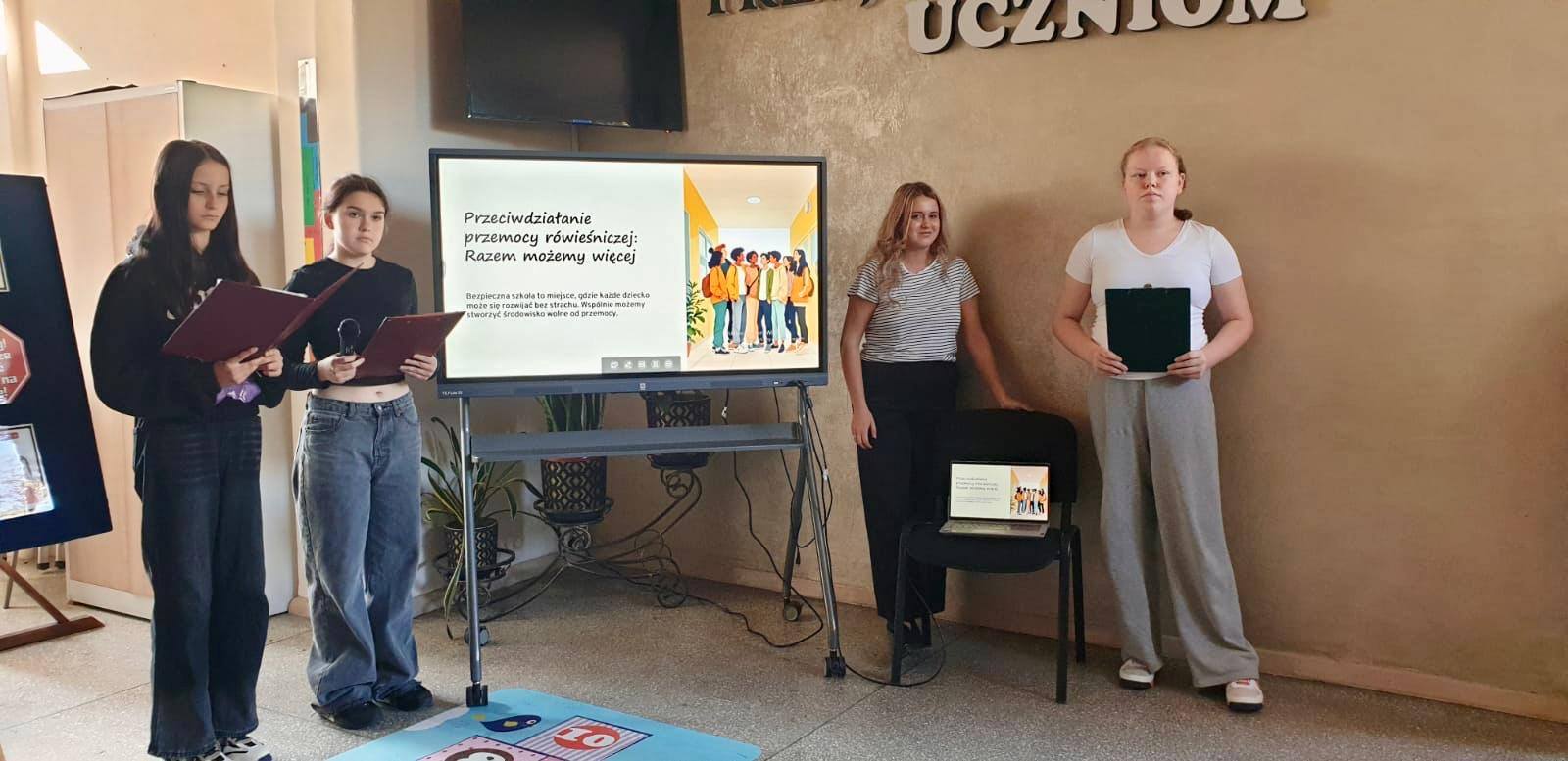 Na rozpoczęcie wydarzenia uczennice przedstawiły prezentację o przeciwdziałaniu przemocy. Opowiedziały o tym, czym jest przemoc, jakie może mieć formy, jakie są jej skutki i w jaki sposób reagować, gdy jesteśmy jej świadkami.