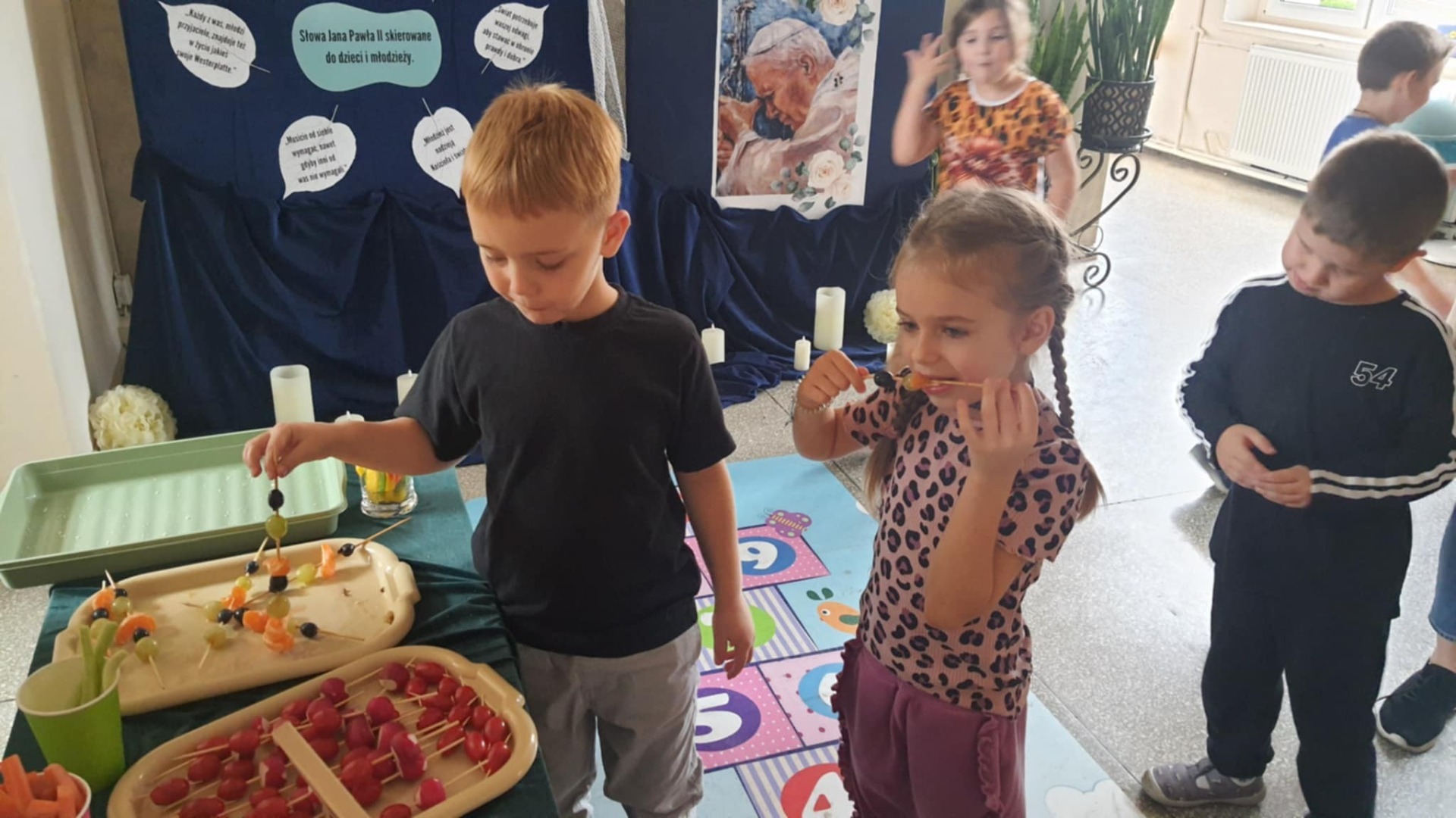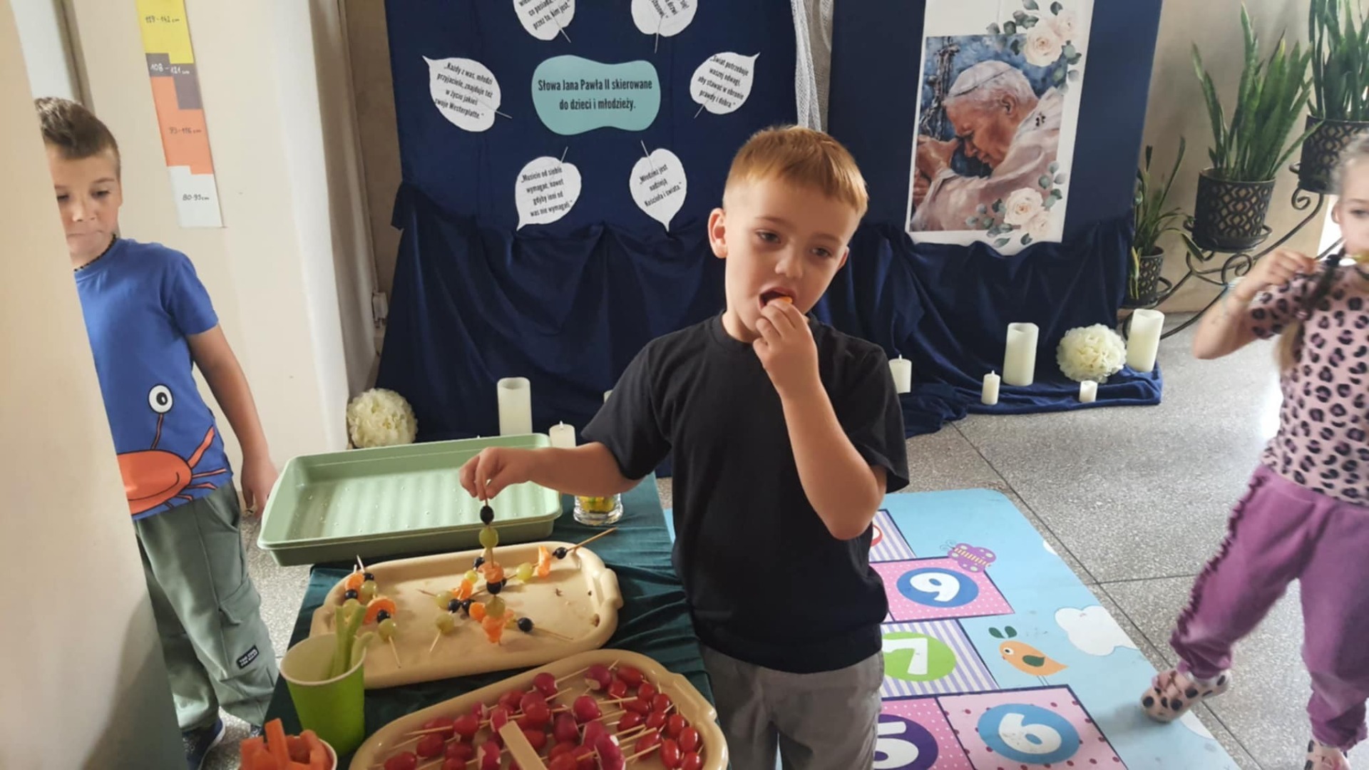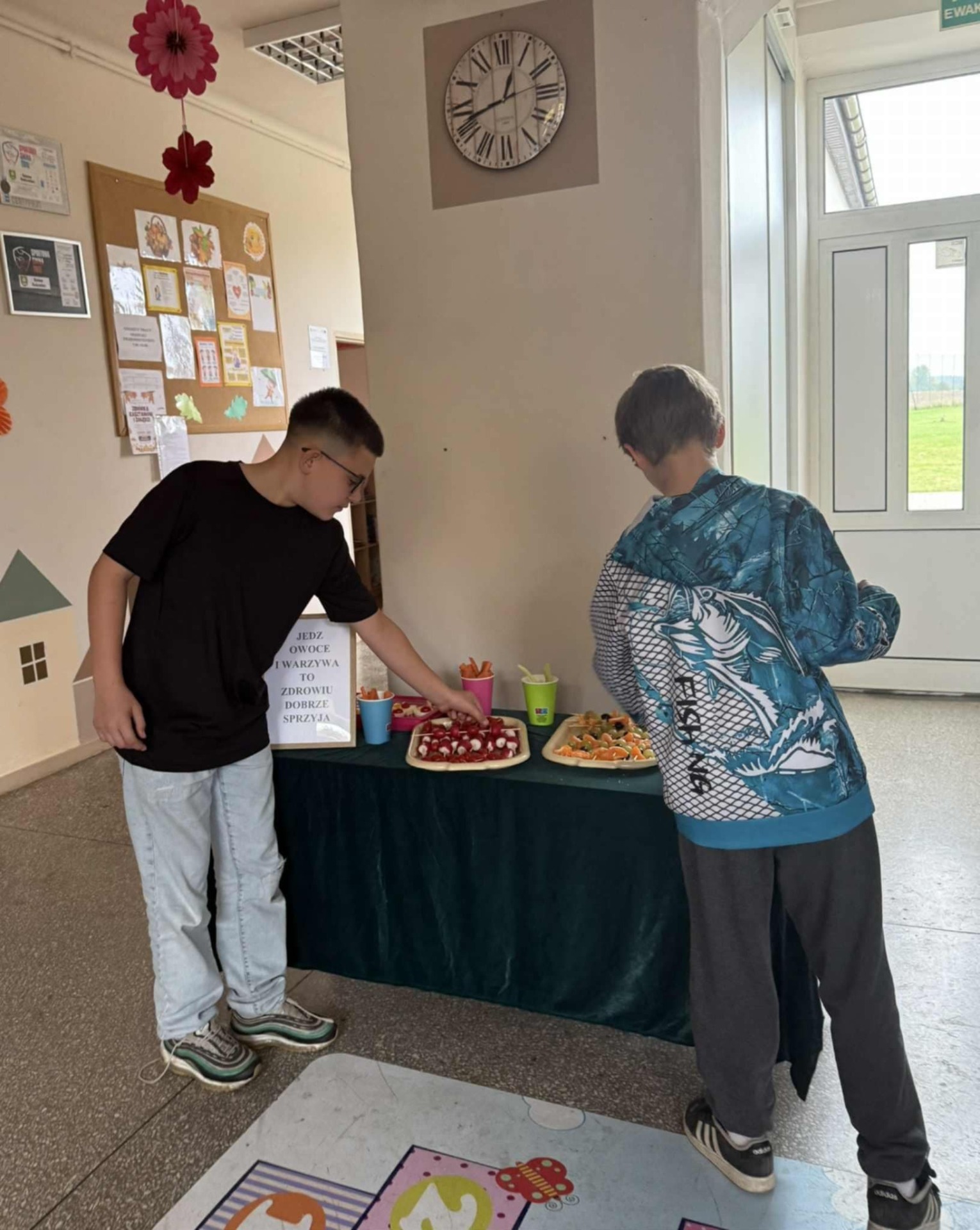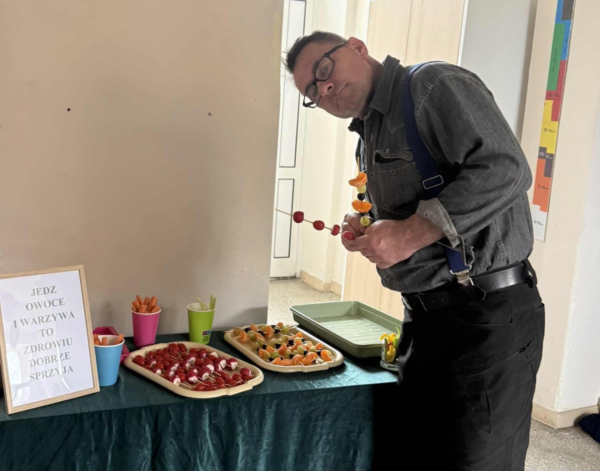 JEDZ OWOCE I WARZYWA TO ZDROWIU DOBRZE SPRZYJA ! W piątek 17 października 2025 r. w naszej szkole obchodziliśmy Światowy Dzień Owoców i Warzyw. Tego dnia zagościły do nas kolory jesieni w postaci przekąsek z owoców i warzyw 🍌🍅 Rączki dzieci się nie nudziły tylko z przyjemnością szaszłyki robiły. Było zdrowo, witaminowo i oczywiście kolorowo. Codziennie jedzmy owoce i warzywa 🍎🍐🥕🥦 Na zdrowie !