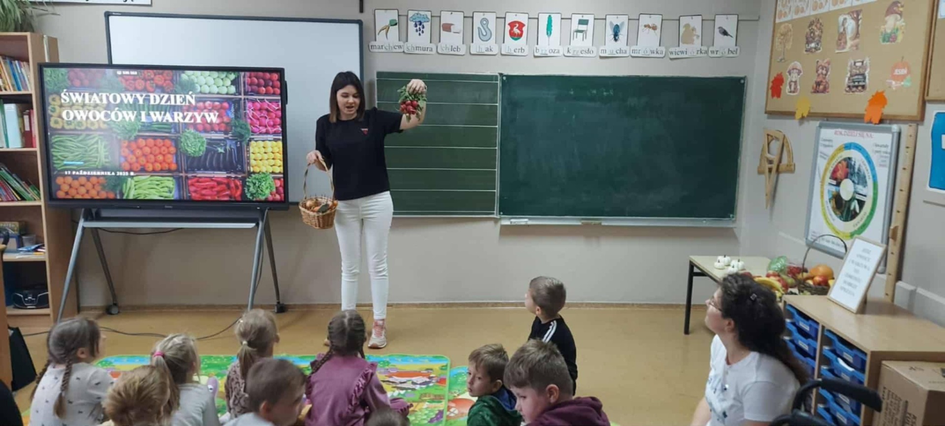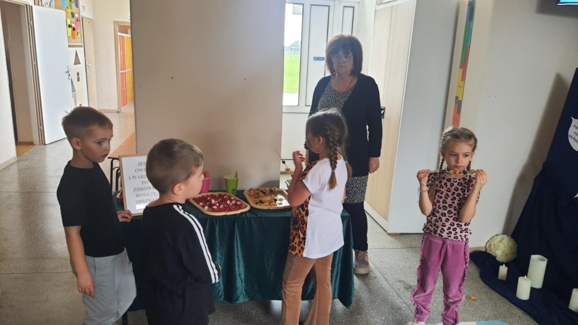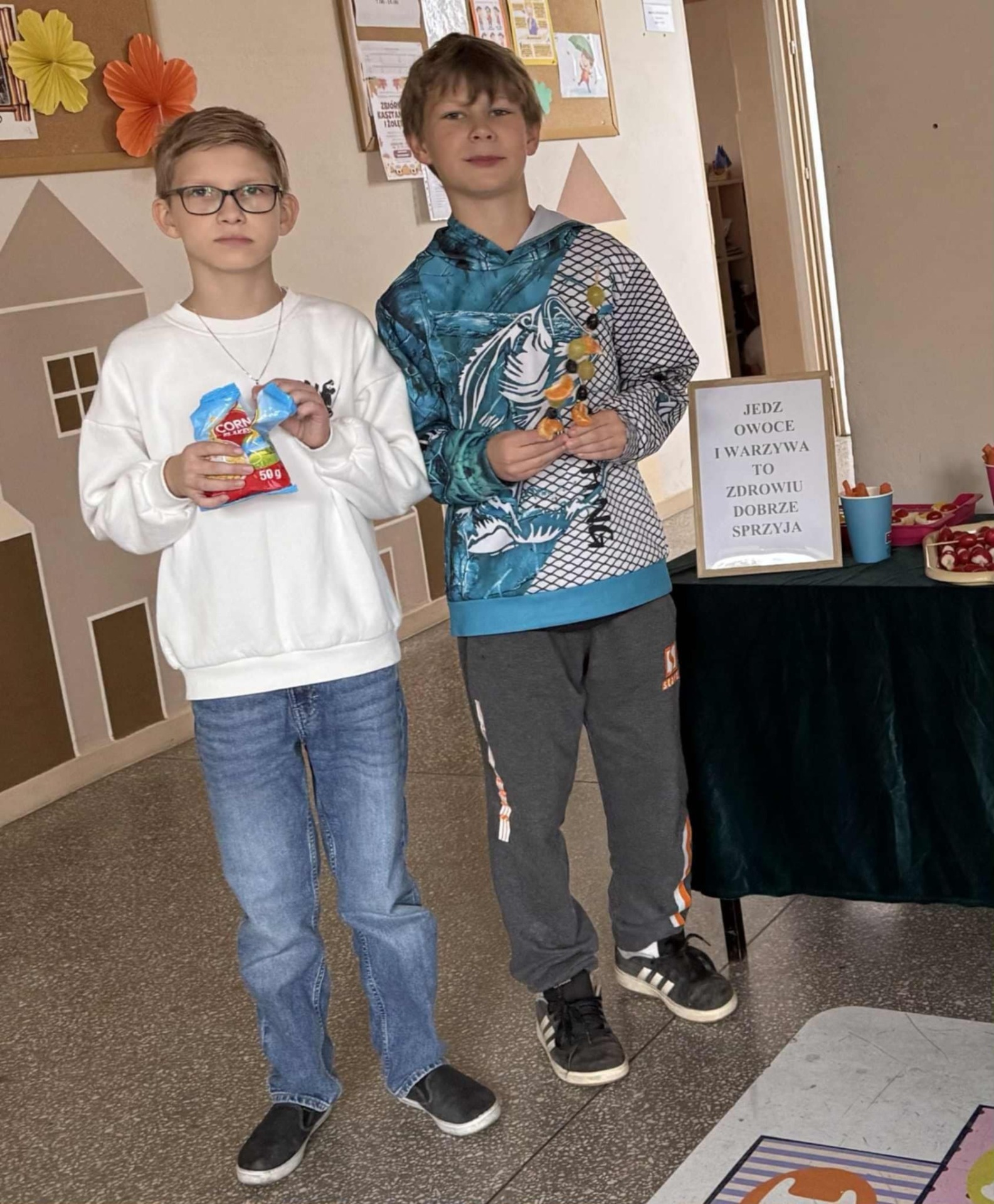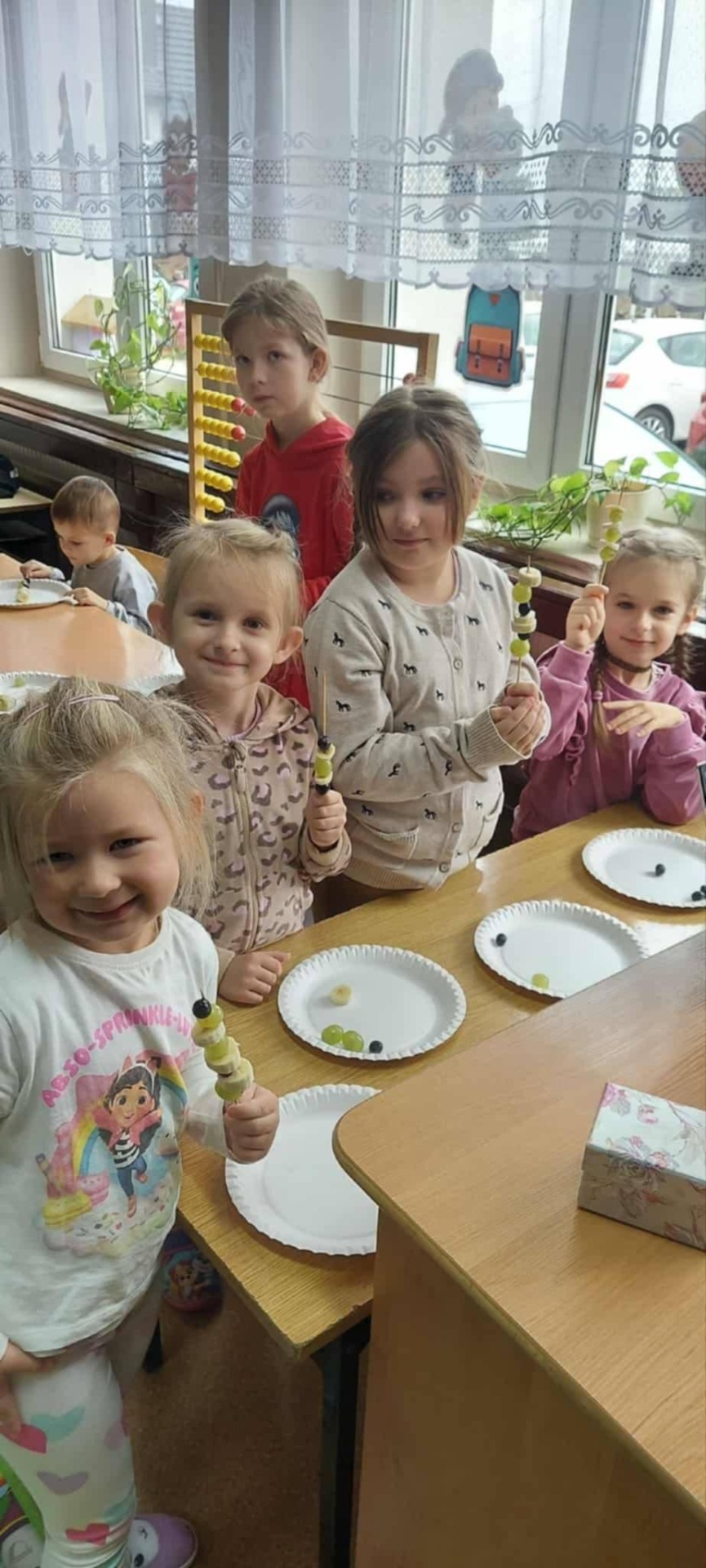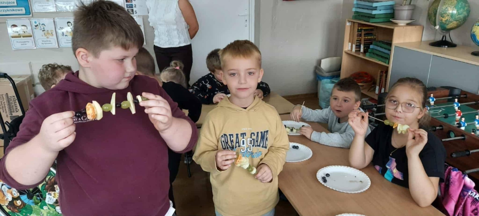 JEDZ OWOCE I WARZYWA TO ZDROWIU DOBRZE SPRZYJA ! W piątek 17 października 2025 r. w naszej szkole obchodziliśmy Światowy Dzień Owoców i Warzyw. Tego dnia zagościły do nas kolory jesieni w postaci przekąsek z owoców i warzyw 🍌🍅 Rączki dzieci się nie nudziły tylko z przyjemnością szaszłyki robiły. Było zdrowo, witaminowo i oczywiście kolorowo. Codziennie jedzmy owoce i warzywa 🍎🍐🥕🥦 Na zdrowie !
