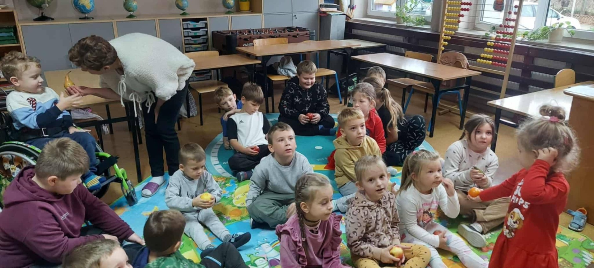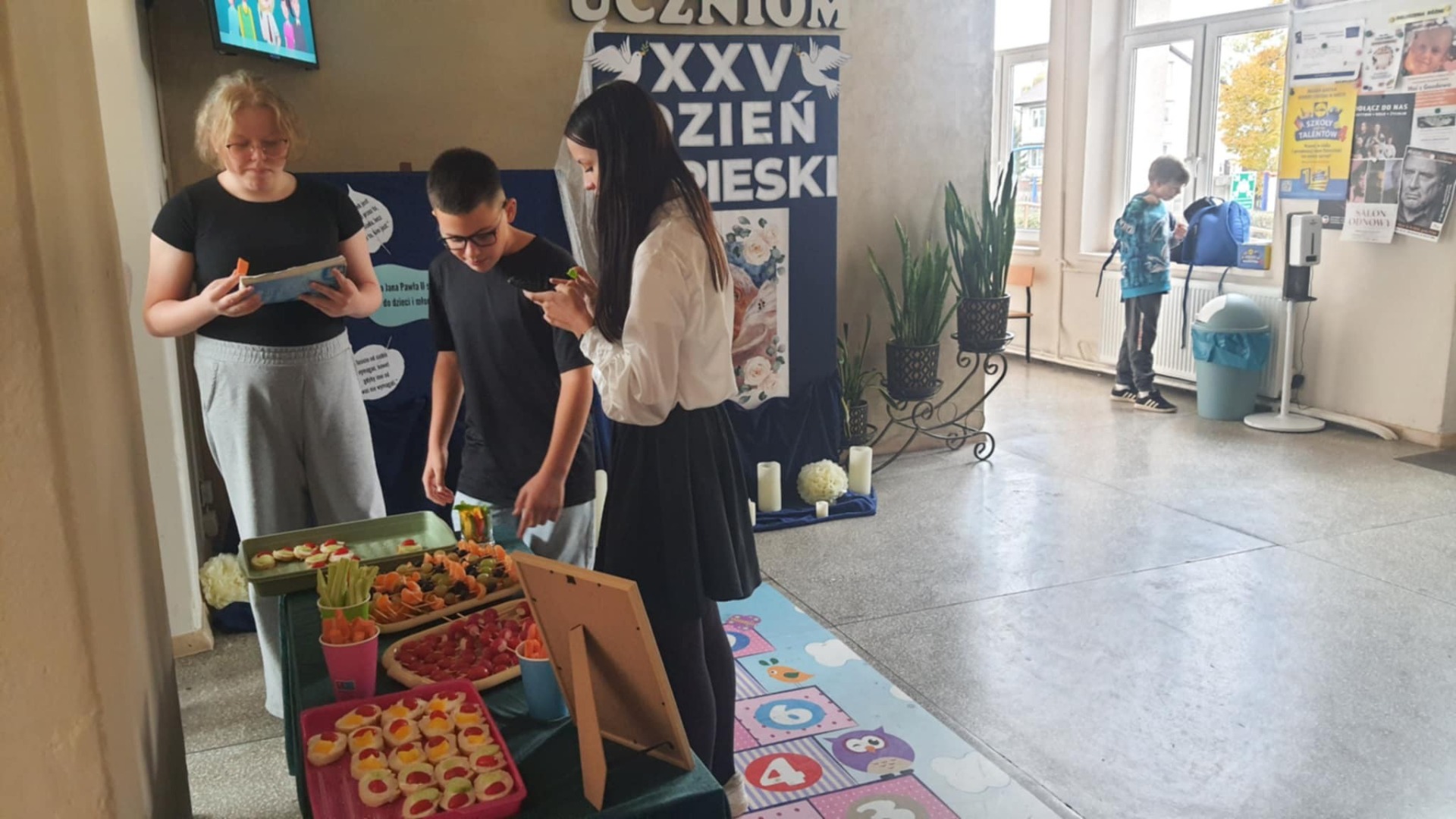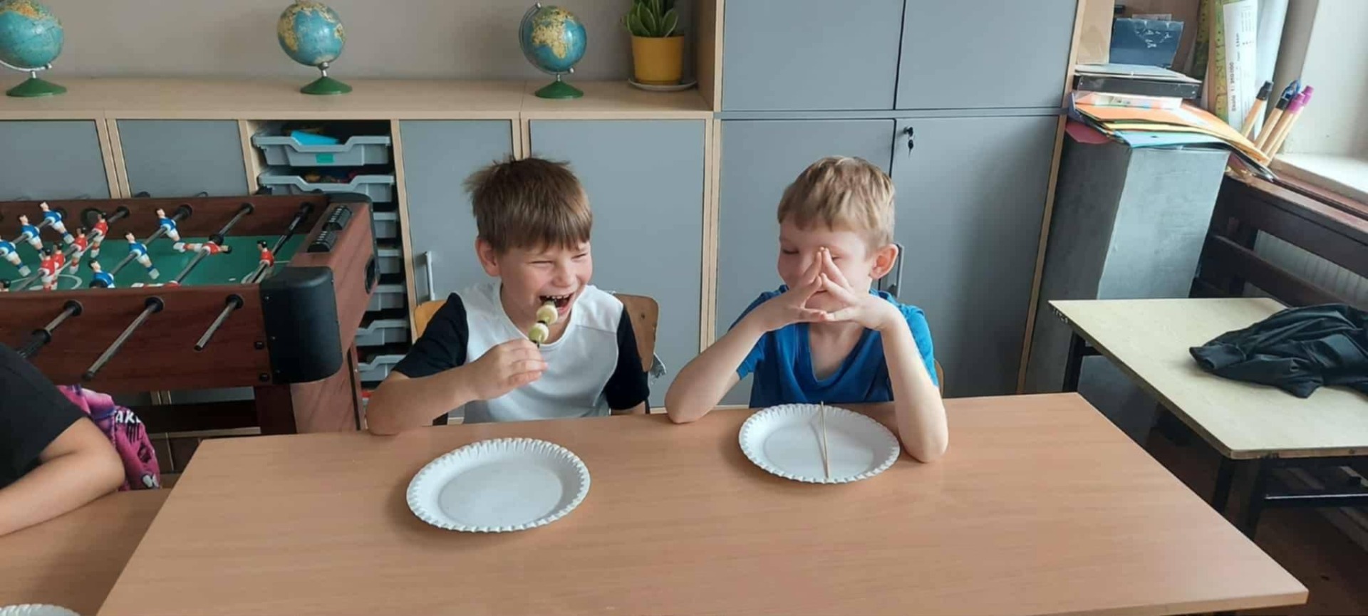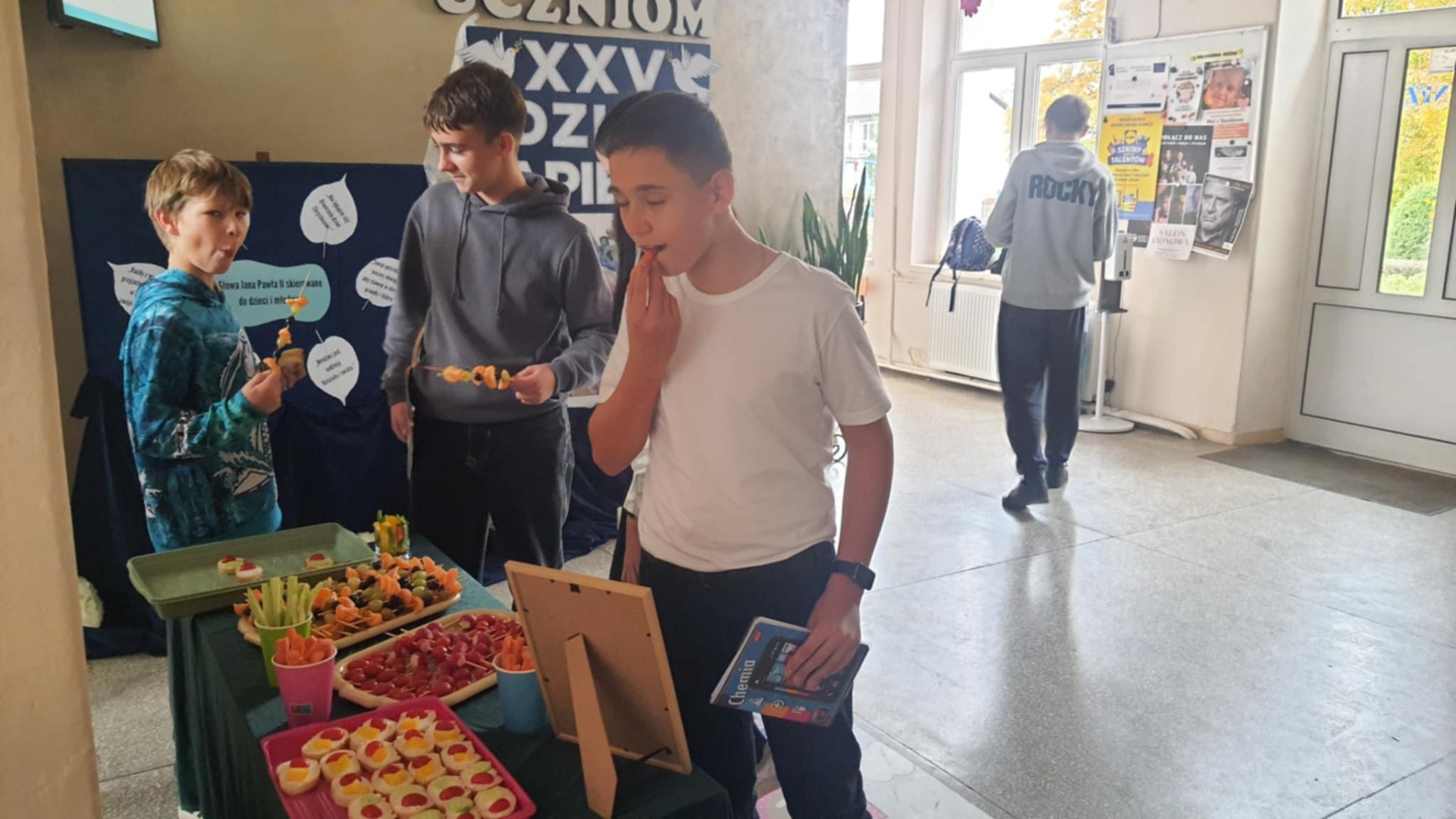 JEDZ OWOCE I WARZYWA TO ZDROWIU DOBRZE SPRZYJA ! W piątek 17 października 2025 r. w naszej szkole obchodziliśmy Światowy Dzień Owoców i Warzyw. Tego dnia zagościły do nas kolory jesieni w postaci przekąsek z owoców i warzyw 🍌🍅 Rączki dzieci się nie nudziły tylko z przyjemnością szaszłyki robiły. Było zdrowo, witaminowo i oczywiście kolorowo. Codziennie jedzmy owoce i warzywa 🍎🍐🥕🥦 Na zdrowie !