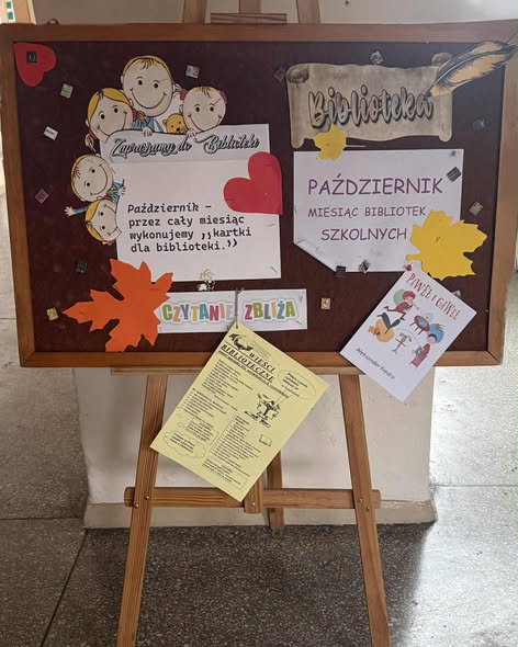 Tegoroczne hasło MIESIĄCA BIBLIOTEK SZKOLNYCH brzmi : ,,Biblioteka zaprasza człowieka” . Inauguracji wydarzeń czytelniczych w naszej szkole związanych z Miesiącem Bibliotek Szkolnych dokonała pani dyrektor - Katarzyna Czartek . Zachęcała wszystkich uczniów do uczestnictwa w akcjach czytelniczych, a szczególnie w miesiącu październiku. Zaczęliśmy więc już 29 września ,,głośnym czytaniem ", a następnie akcją ,,CZYTAMY Z SERCEM " , która trwała od 30 września do 10 października . Zwieńczeniem tych wydarzeń był wyjazd klas O-III wraz z opiekunkami do Gminnej Biblioteki w Kościelcu wraz z filią w Dobrowie, gdzie pani dyrektor - Anna Zawadzka powitała nas z wielkim entuzjazmem i radością, przygotowując szereg niespodzianek dla naszych uczniów. W dowód wdzięczności nasi milusińscy podarowali pani Ani piękne czerwone serce oraz podziękowanie w formie dyplomu upamiętniającego naszą wizytę. Kończy się miesiąc październik i tym samym wydarzenia związane z Międzynarodowym Miesiącem Bibliotek Szkolnych. Dziękujemy wszystkim, którzy zaangażowali się w nasze akcje. Uczniom klasy VII , pani pielęgniarce szkolnej - Oldze Piekarskiej, paniom :Katarzynie Rutkowskiej -wychowawczyni klasy II i pani Patrycji Malczyk = wychowawczyni klasy III . Zostały One nagrodzone orderem ,,Przyjaciela książek ", które wręczyły im nasi najmłodsi czytelnicy. Dziękujemy i już teraz zapraszamy ponownie za rok .