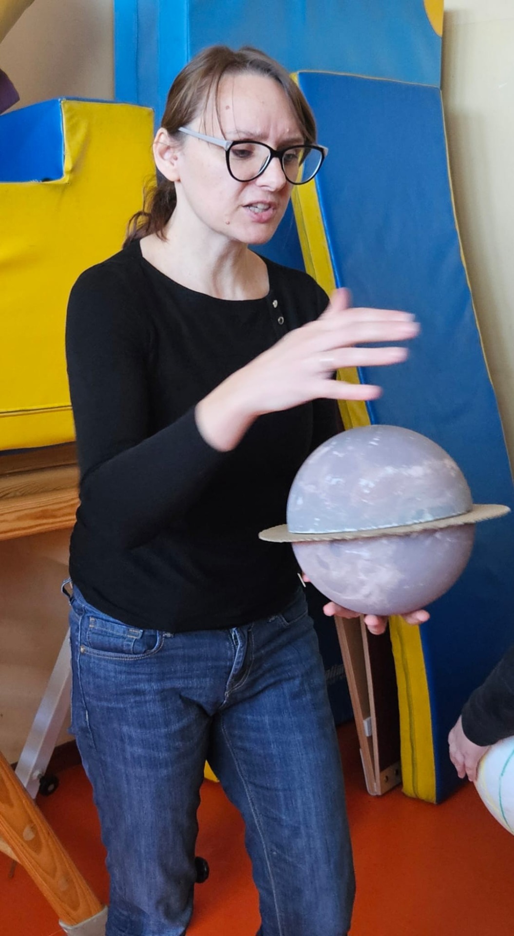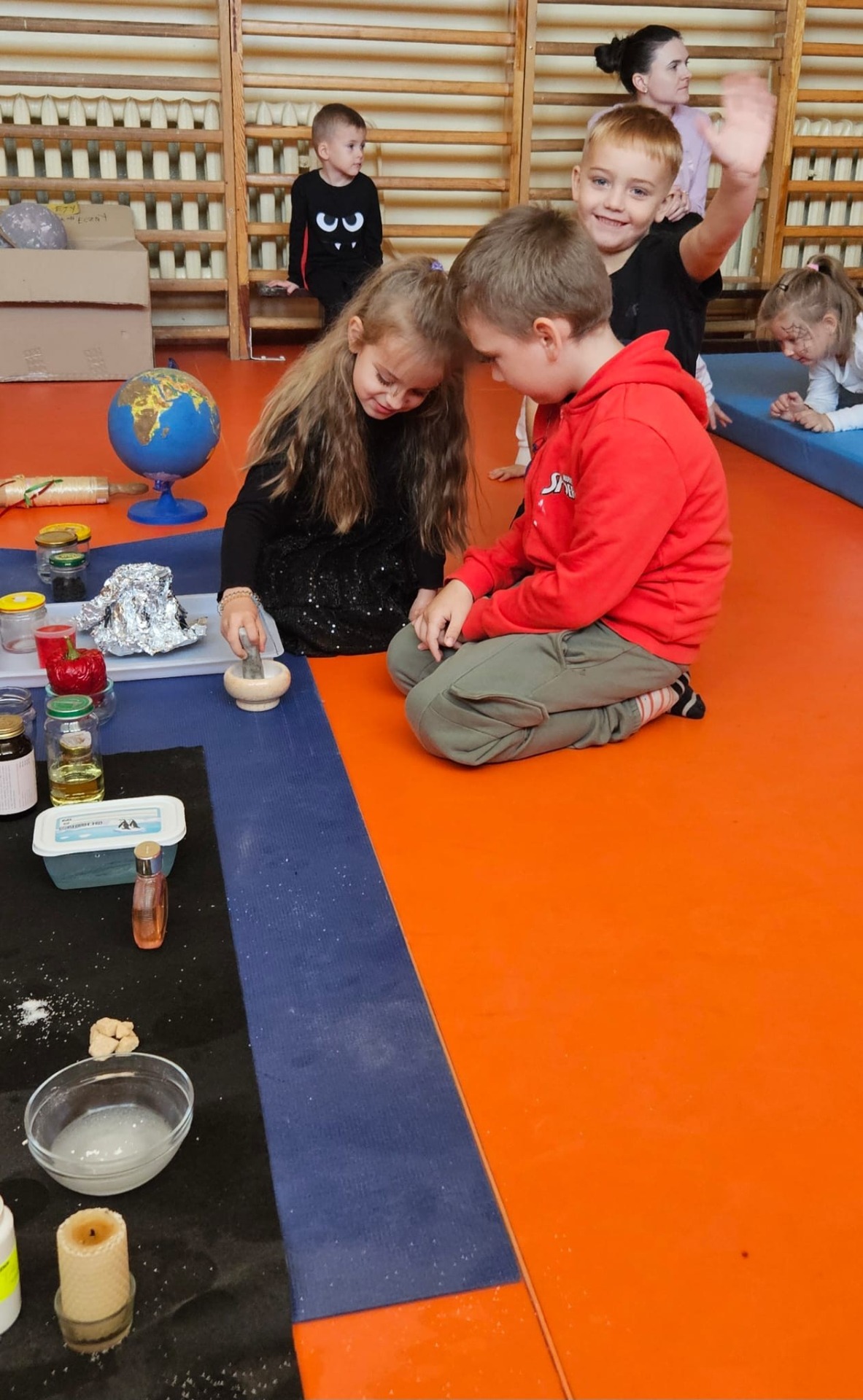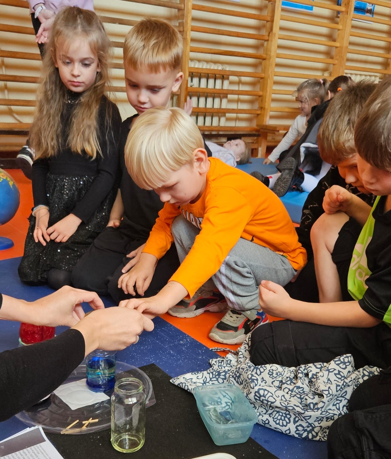 W naszej szkole odbyło się niezwykle ciekawe i inspirujące spotkanie prowadzone przez mamę naszego ucznia - panią Magdalenę Kujawę, która zaprosiła dzieci do udziału w „Pierwszej lekcji powstania Wszechświata” według metody Marii Montessori. To wyjątkowa prezentacja, która wprowadza uczniów w tajemnice początku wszystkiego – od Wielkiego Wybuchu, poprzez powstawanie gwiazd, planet i życia na Ziemi. Dzięki opowieści pełnej obrazów, eksperymentów i rekwizytów dzieci mogły w przystępny sposób zrozumieć ogrom i piękno Wszechświata oraz poczuć zachwyt nad światem, którego są częścią. Spotkanie było pełne emocji, pytań i refleksji, a uczniowie z dużym zainteresowaniem śledzili każdy etap tej niezwykłej historii. Dziękujemy pani Magdalenie Kujawie za zaangażowanie i inspirującą lekcję, która na długo pozostanie w pamięci naszych uczniów.