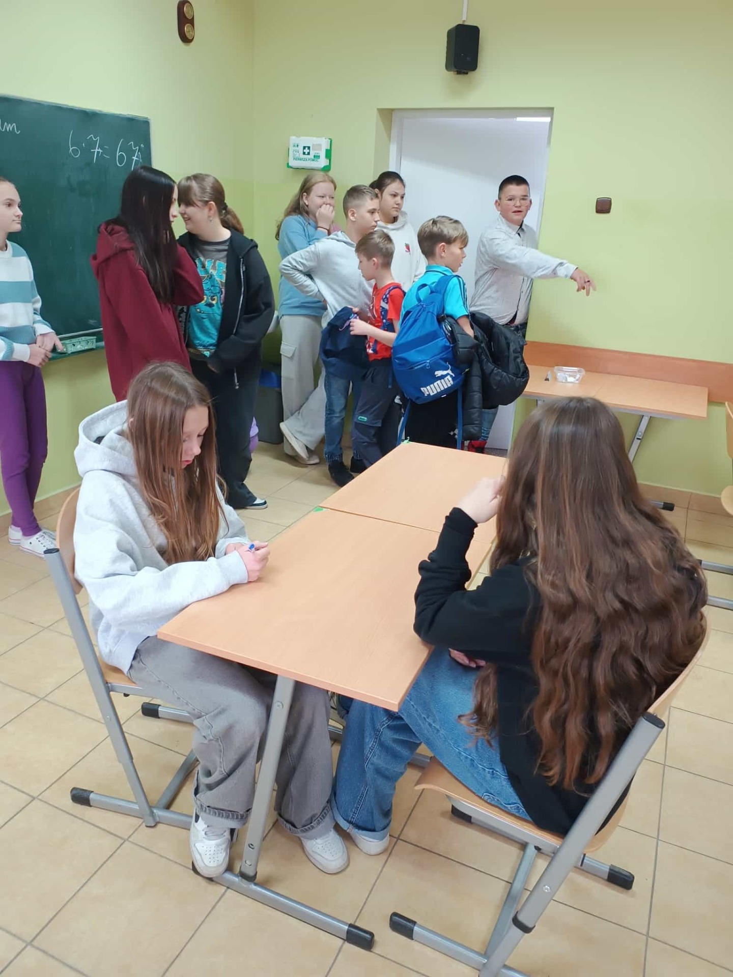 Egzaminy przeprowadzały uczennice z klasy VIII, które wcześniej przeszły szkolenie i kwalifikacje na egzaminatorów – spisały się znakomicie! 👏