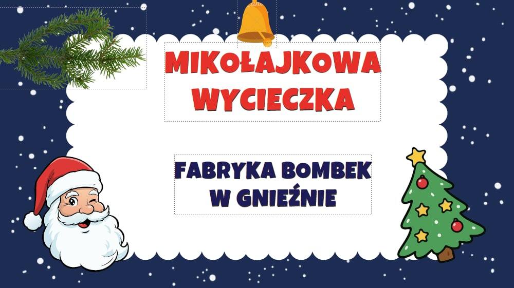 W poniedziałek 8 grudnia uczniowie wraz z opiekunami wybrali się do fabryki bombek Gabi-Glass w Gnieźnie. Na początku poznali proces produkcji ozdób choinkowych zwiedzając cztery główne działy fabryki: dmuchalnia, srebrzalnia, lakiernia i dekoratornia. Po zwiedzaniu nadszedł czas na udekorowanie bombek według własnego pomysłu. Radości, zabawy i brokatu było co nie miara. Oczywiście w autokarze nie zabrakło piosenek świątecznych, zagadek i ciekawostek o najpiękniejszych świętach w roku. Wycieczka przebiegła w wesołej, świątecznej i magicznej atmosferze.